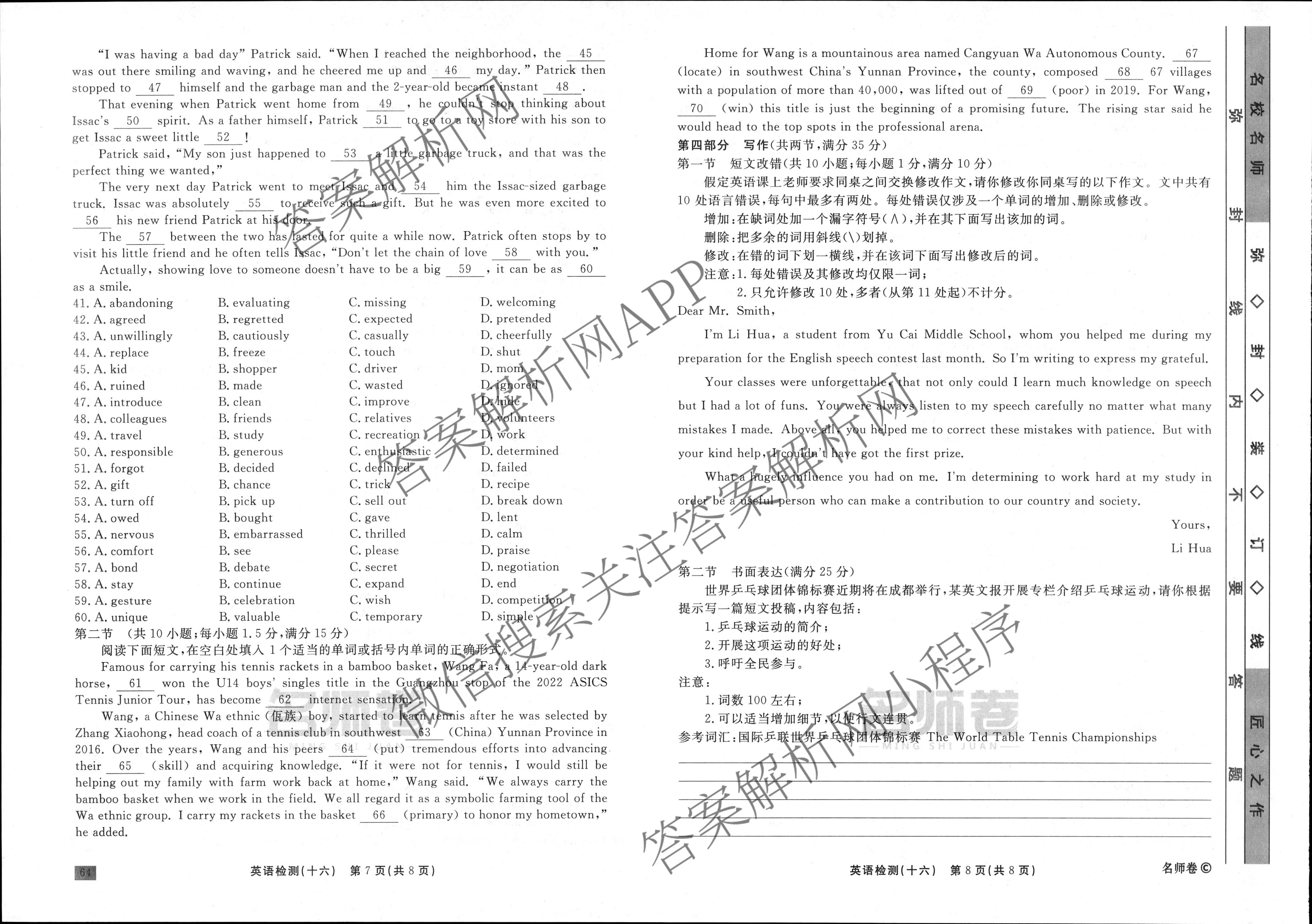 衡水名师卷2023-2024学年度高三一轮复习单元检测卷英语(空心菱形)检测(十六)16试题