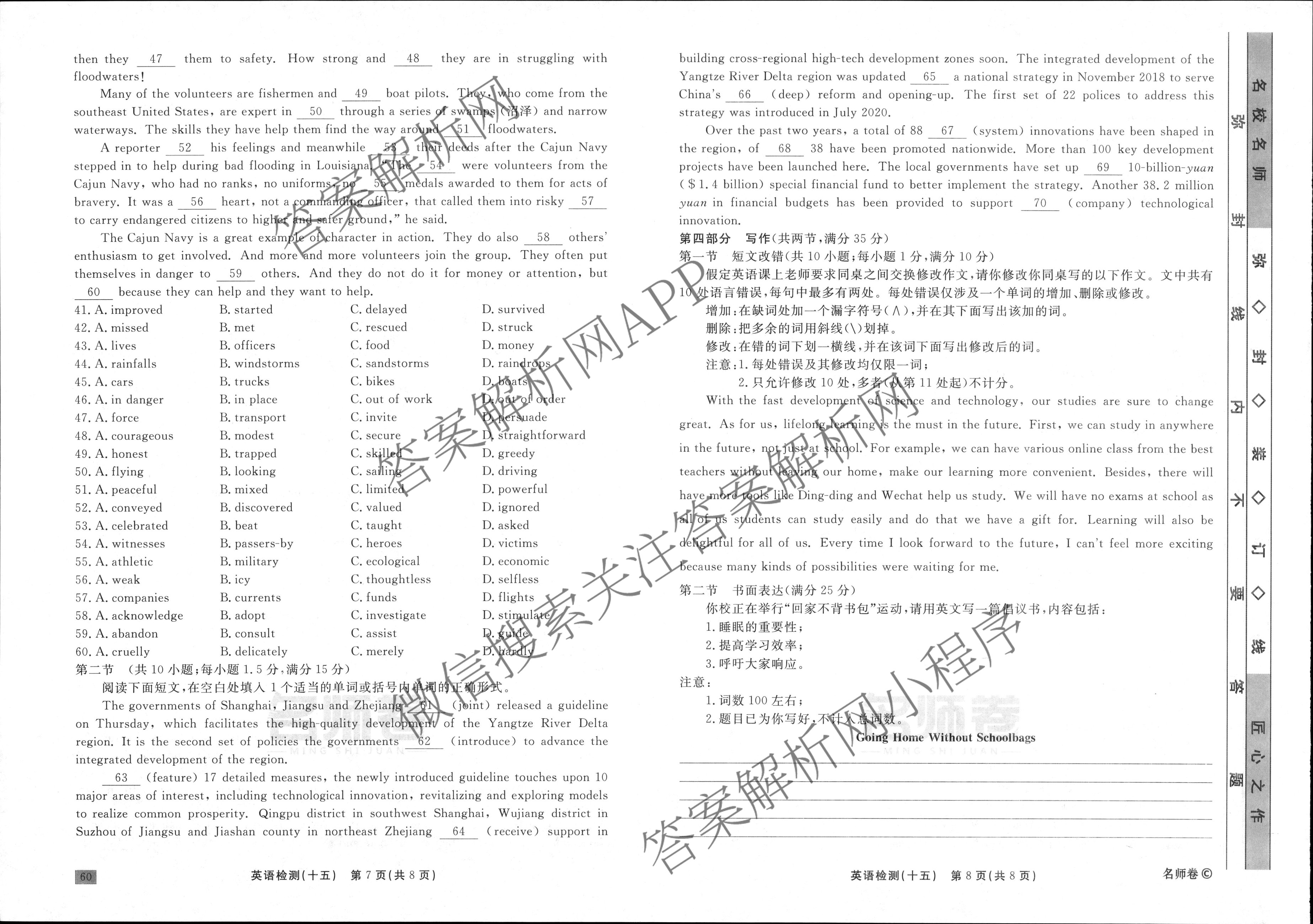 衡水名师卷2023-2024学年度高三一轮复习单元检测卷英语(空心菱形)检测(十五)15试题