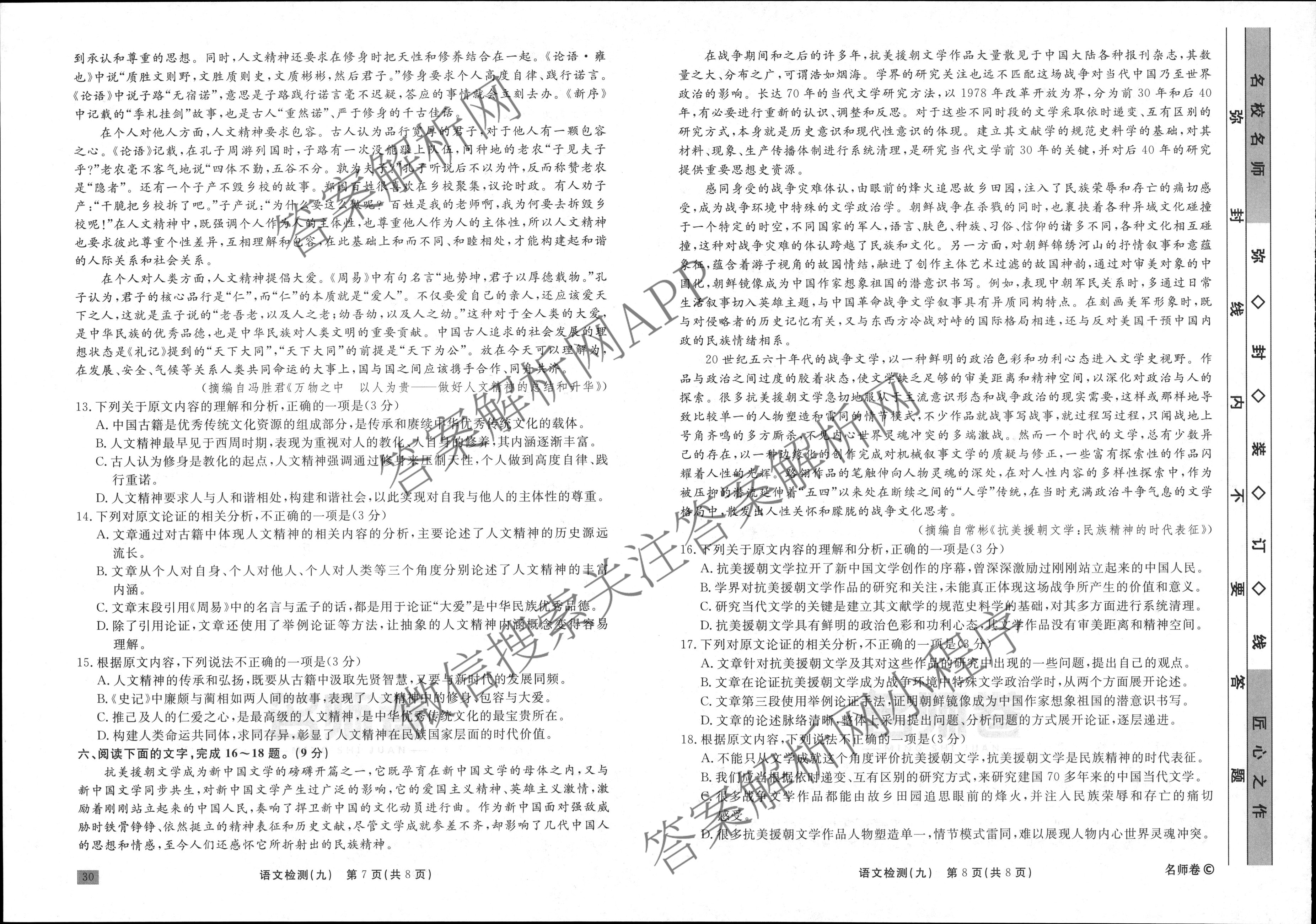 衡水名师卷·2023-2024学年度高三一轮复习单元检测卷·语文(空心菱形)检测(九)9试题,目前分科卷答案网已经汇总了衡水名师卷·2023-2024学年度高三一轮复习单元检测卷·语文(空心菱形)检测(九)9试题的各科答案和试卷,获取更多衡水名师卷答案解析,请在关注本站。