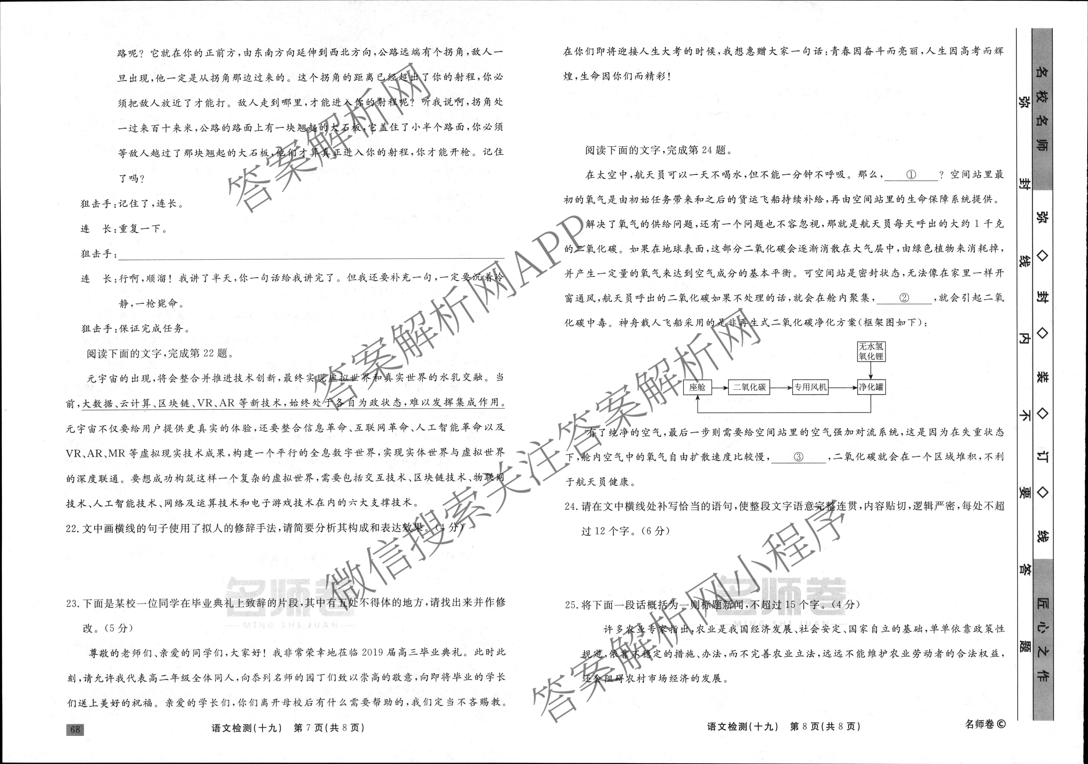 衡水名师卷·2023-2024学年度高三一轮复习单元检测卷·语文(空心菱形)检测(十九)19试题,目前分科卷答案网已经汇总了衡水名师卷·2023-2024学年度高三一轮复习单元检测卷·语文(空心菱形)检测(十九)19试题的各科答案和试卷,获取更多衡水名师卷答案解析,请在关注本站。
