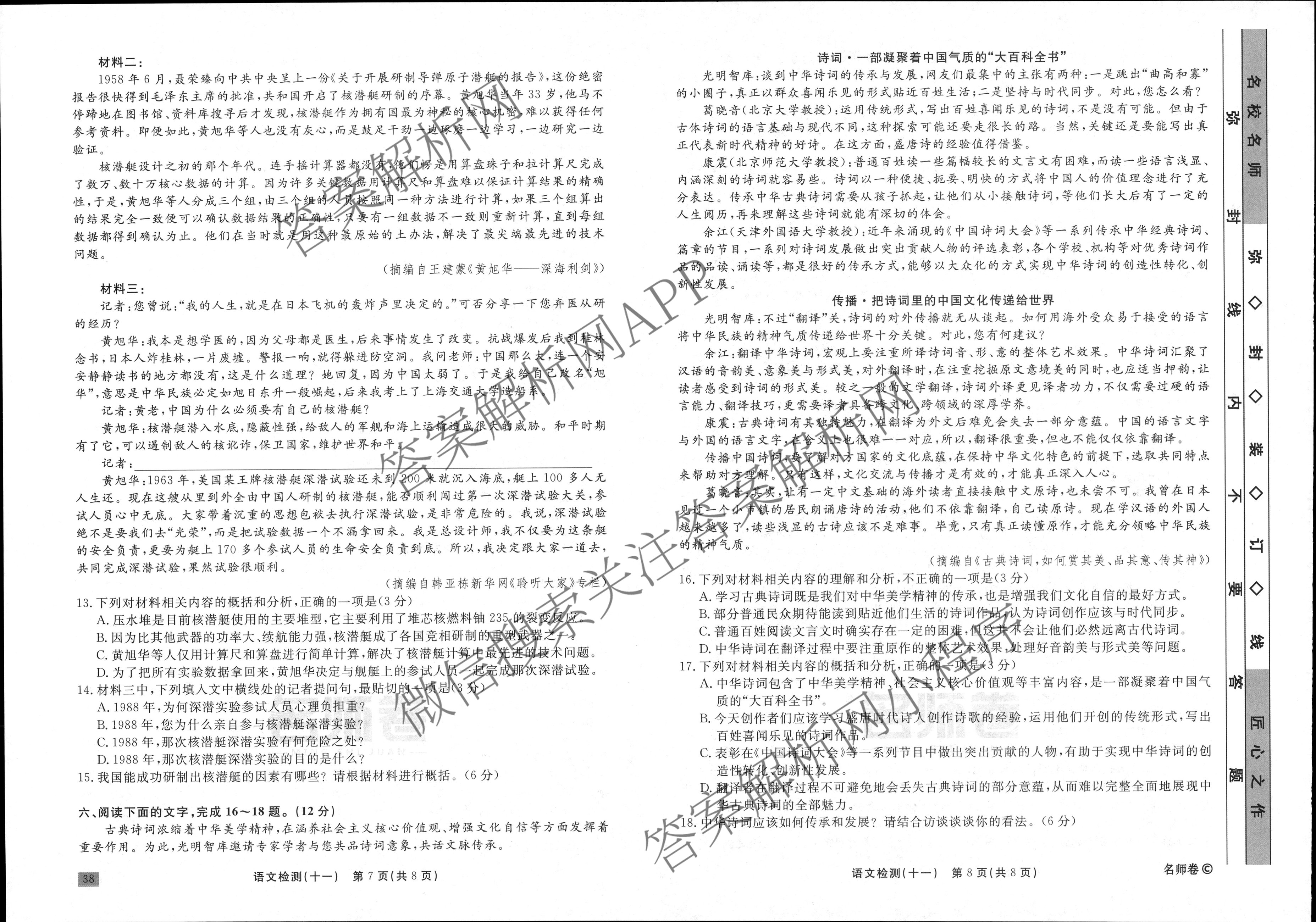 衡水名师卷·2023-2024学年度高三一轮复习单元检测卷·语文(空心菱形)检测(十一)11试题,目前分科卷答案网已经汇总了衡水名师卷·2023-2024学年度高三一轮复习单元检测卷·语文(空心菱形)检测(十一)11试题的各科答案和试卷,获取更多衡水名师卷答案解析,请在关注本站。