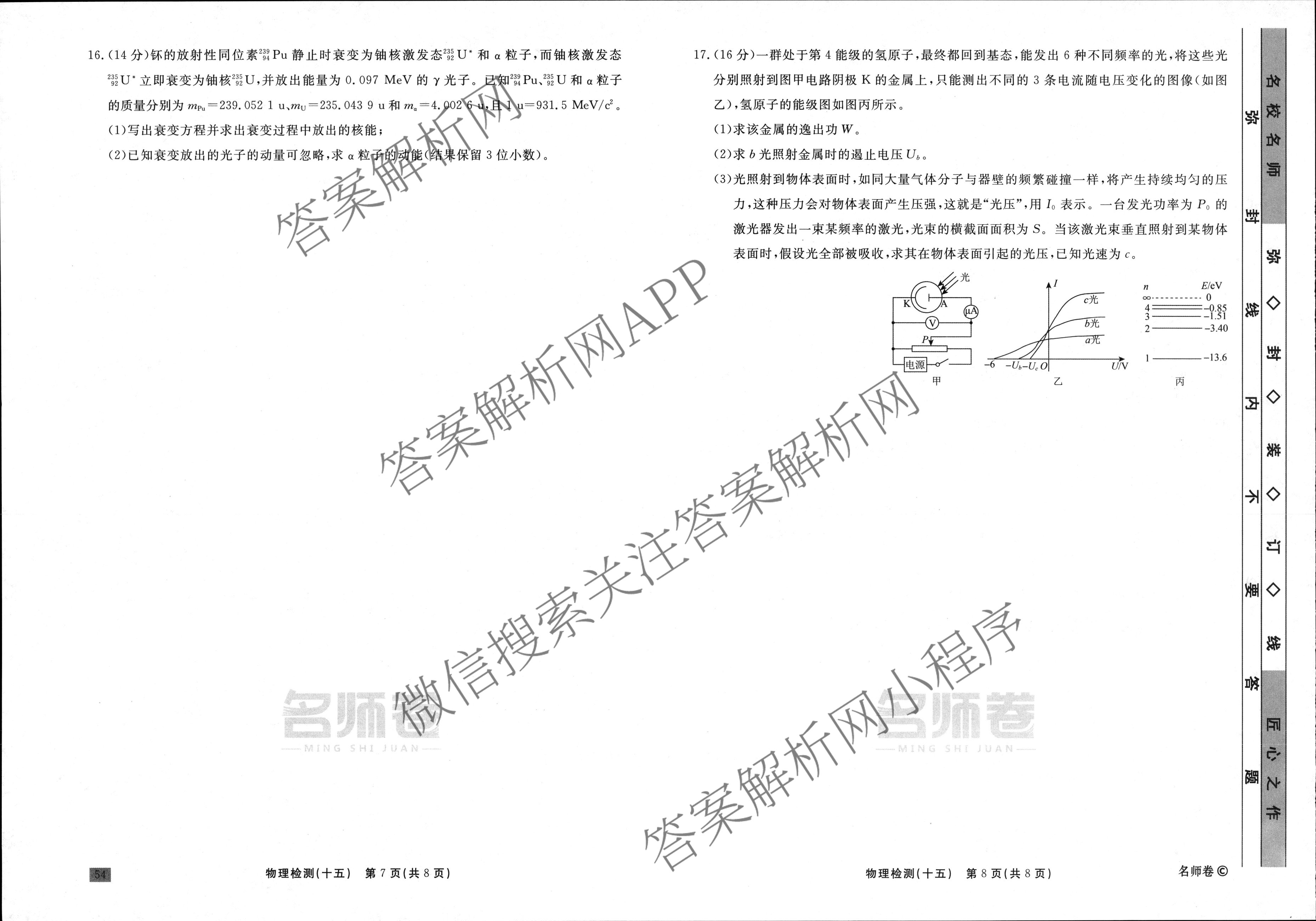 衡水名师卷·2023-2024学年度高三一轮复习单元检测卷·物理(空心菱形)·检测(十五)15试题,目前分科卷答案网已经汇总了衡水名师卷·2023-2024学年度高三一轮复习单元检测卷·物理(空心菱形)·检测(十五)15试题的各科答案和试卷,获取更多衡水名师卷答案解析,请在关注本站。