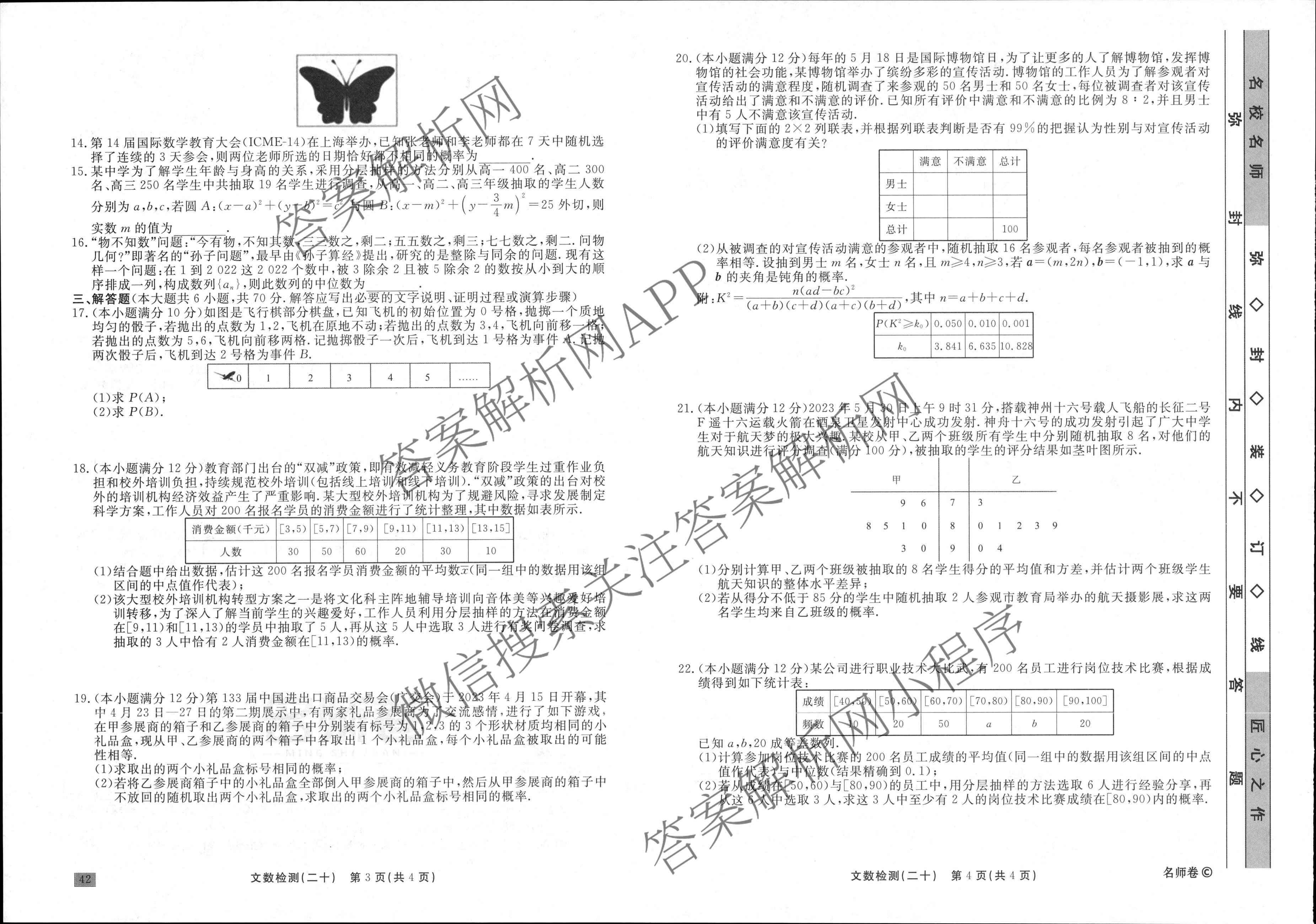 衡水名师卷2023-2024学年度高三一轮复习单元检测卷文数(空心菱形)检测(二十)20试题