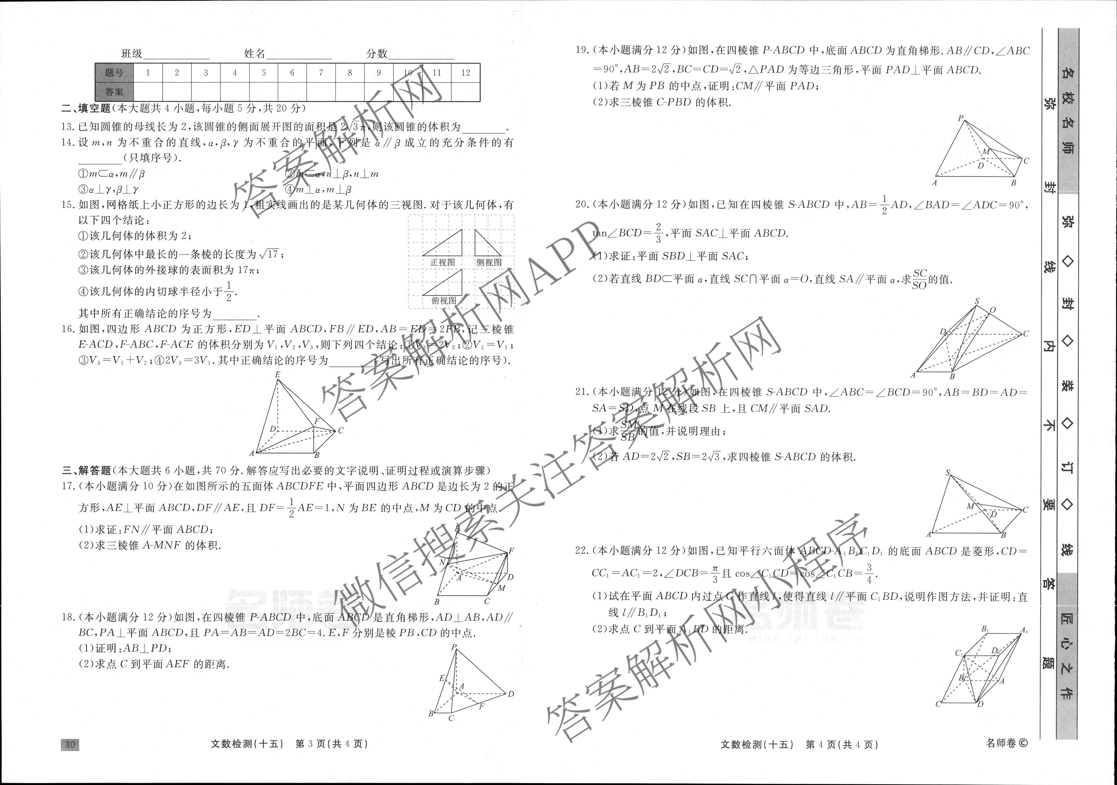 衡水名师卷·2023-2024学年度高三一轮复习单元检测卷·文数(空心菱形)检测(十五)15试题,目前分科卷答案网已经汇总了衡水名师卷·2023-2024学年度高三一轮复习单元检测卷·文数(空心菱形)检测(十五)15试题的各科答案和试卷,获取更多衡水名师卷答案解析,请在关注本站。