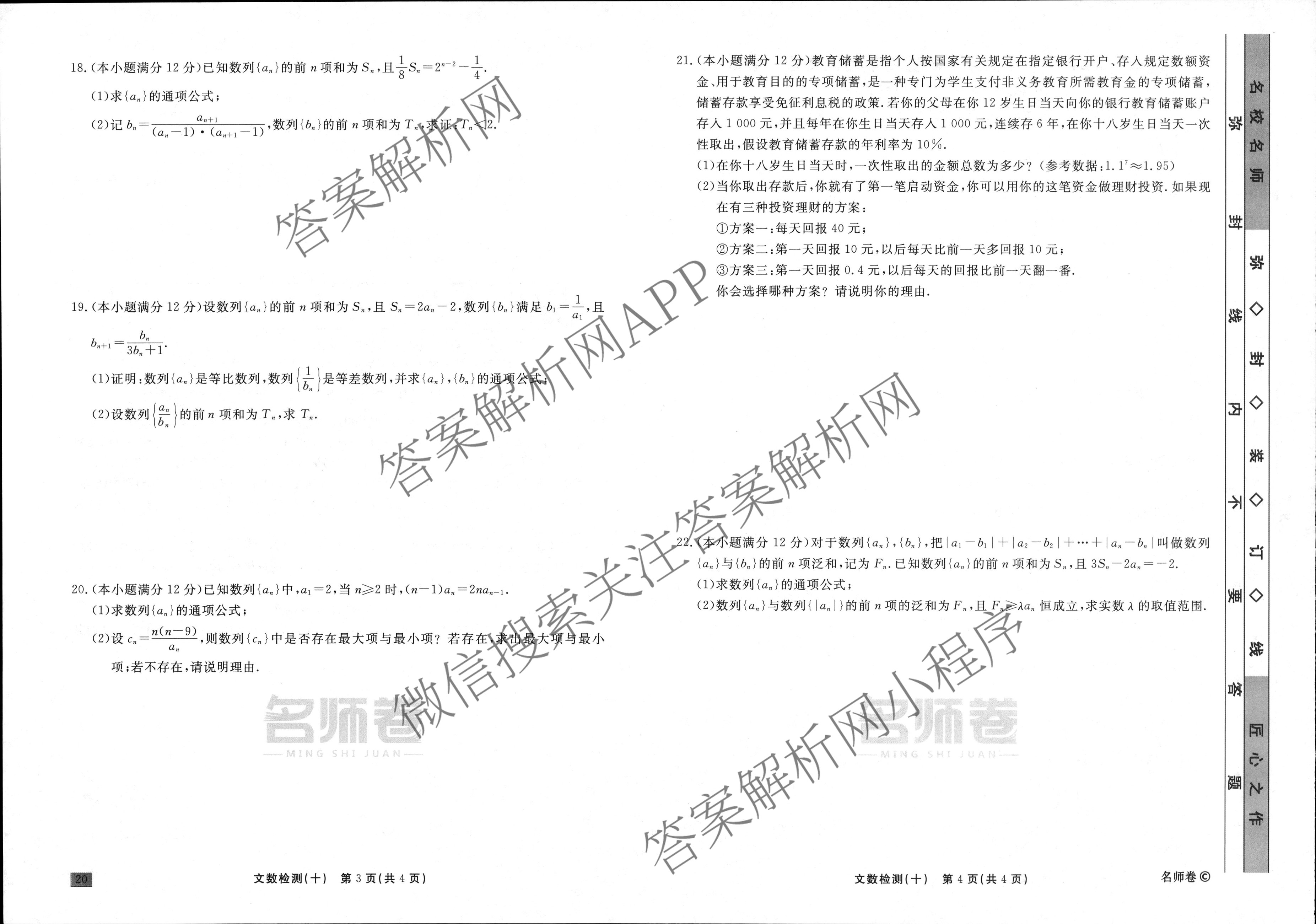 衡水名师卷2023-2024学年度高三一轮复习单元检测卷文数(空心菱形)检测(十)10试题