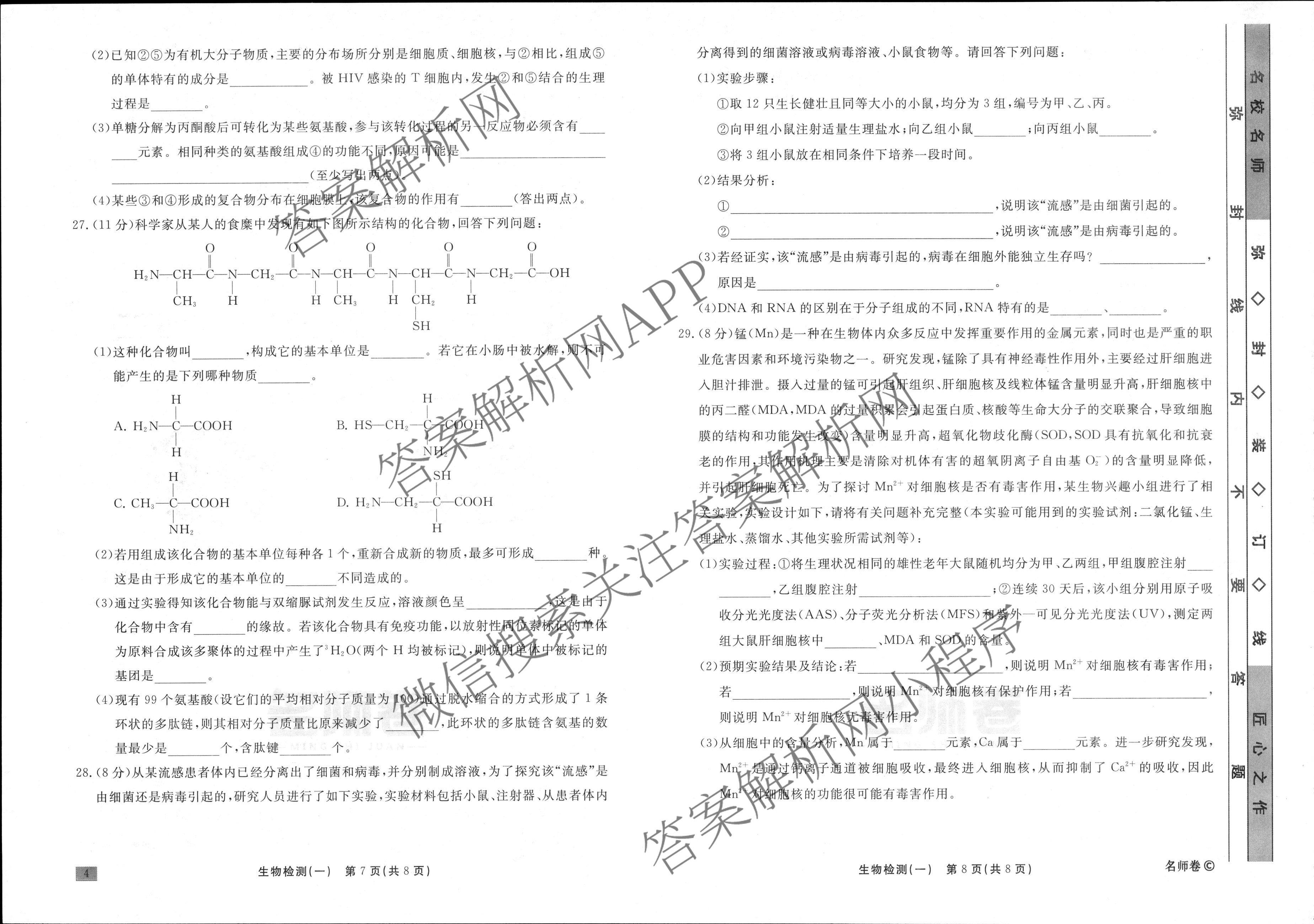 衡水名师卷·2023-2024学年度高三一轮复习单元检测卷·生物(空心菱形)检测(一)1试题,目前分科卷答案网已经汇总了衡水名师卷·2023-2024学年度高三一轮复习单元检测卷·生物(空心菱形)检测(一)1试题的各科答案和试卷,获取更多衡水名师卷答案解析,请在关注本站。