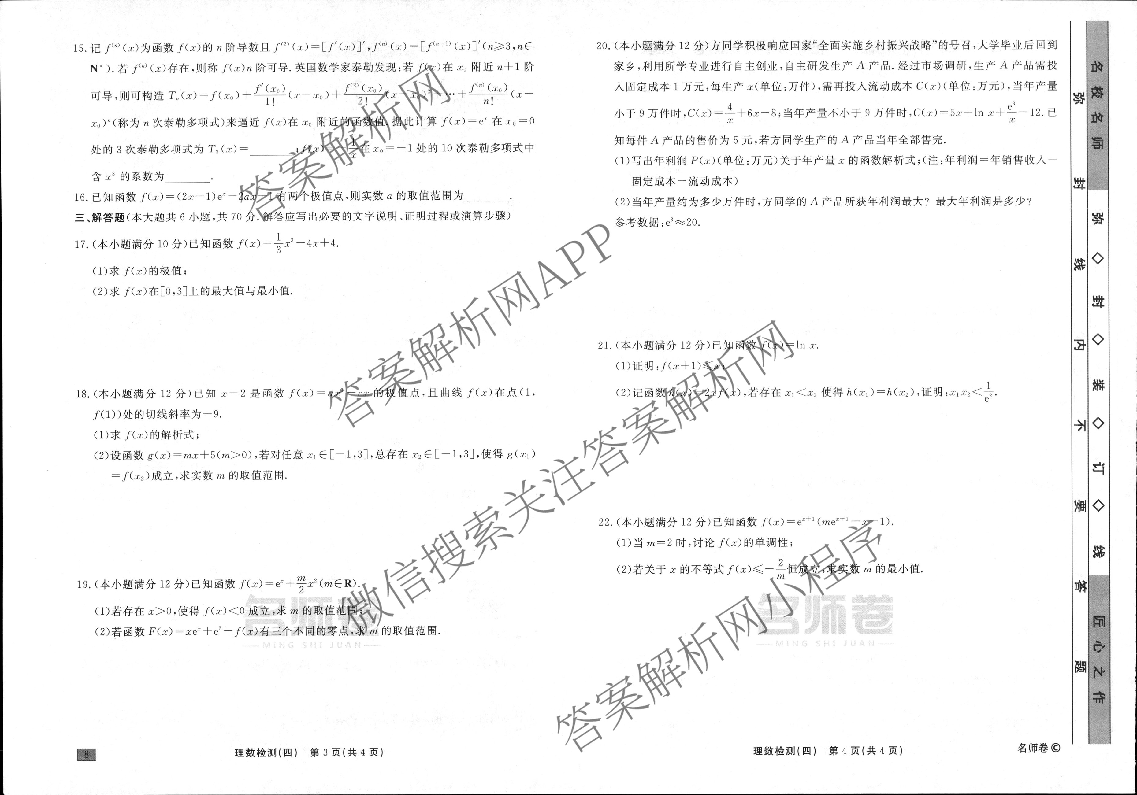 衡水名师卷·2023-2024学年度高三一轮复习单元检测卷·理数(空心菱形)检测(四)4试题,目前分科卷答案网已经汇总了衡水名师卷·2023-2024学年度高三一轮复习单元检测卷·理数(空心菱形)检测(四)4试题的各科答案和试卷,获取更多衡水名师卷答案解析,请在关注本站。