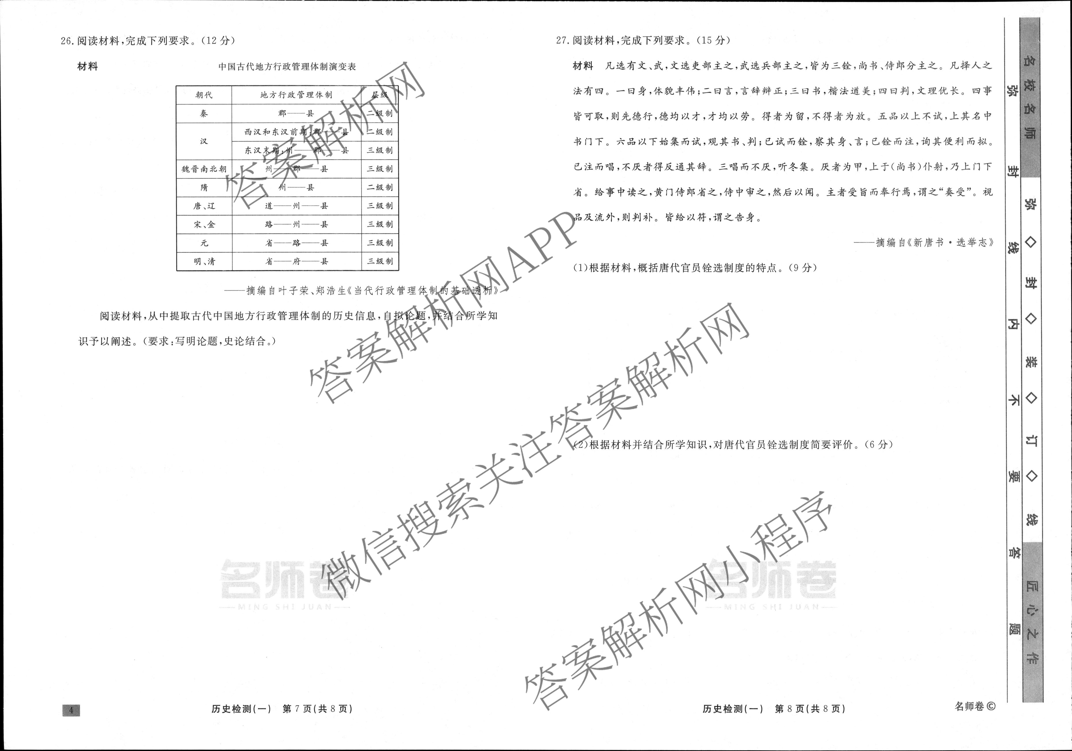 衡水名师卷·2023-2024学年度高三一轮复习单元检测卷·历史(空心菱形)检测(一)1试题,目前分科卷答案网已经汇总了衡水名师卷·2023-2024学年度高三一轮复习单元检测卷·历史(空心菱形)检测(一)1试题的各科答案和试卷,获取更多衡水名师卷答案解析,请在关注本站。
