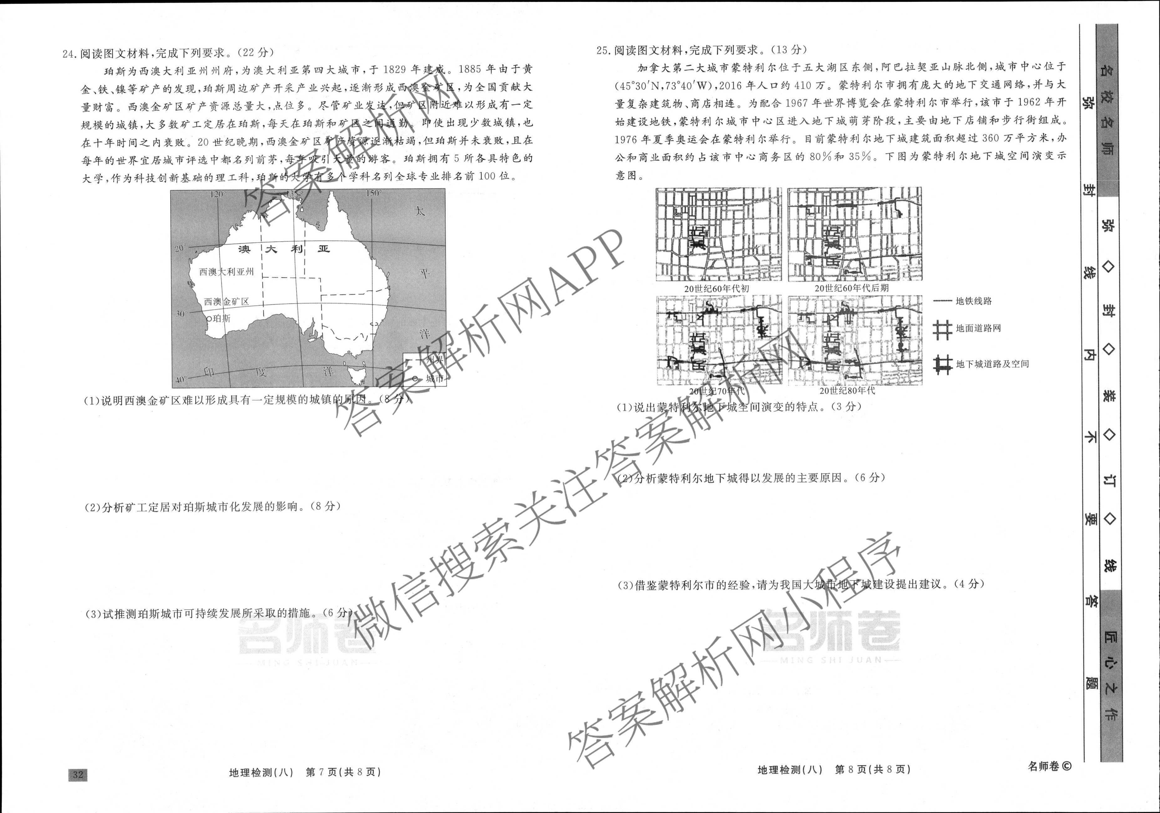 衡水名师卷2023-2024学年度高三一轮复习单元检测卷地理(空心菱形)检测(八)8试题