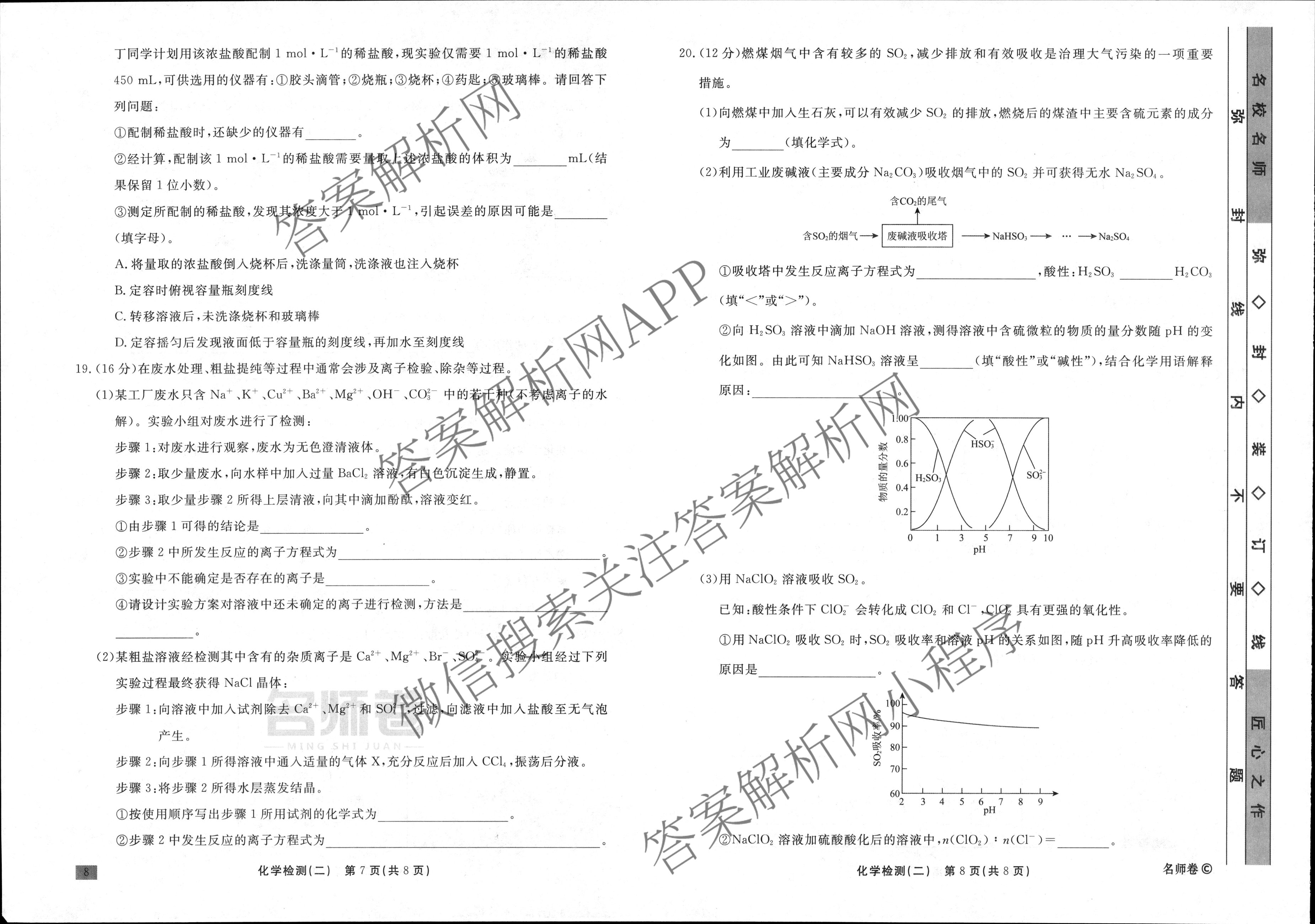 衡水名师卷·2023-2024学年度高三一轮复习单元检测卷·化学(空心菱形)检测(二)2试题,目前分科卷答案网已经汇总了衡水名师卷·2023-2024学年度高三一轮复习单元检测卷·化学(空心菱形)检测(二)2试题的各科答案和试卷,获取更多衡水名师卷答案解析,请在关注本站。