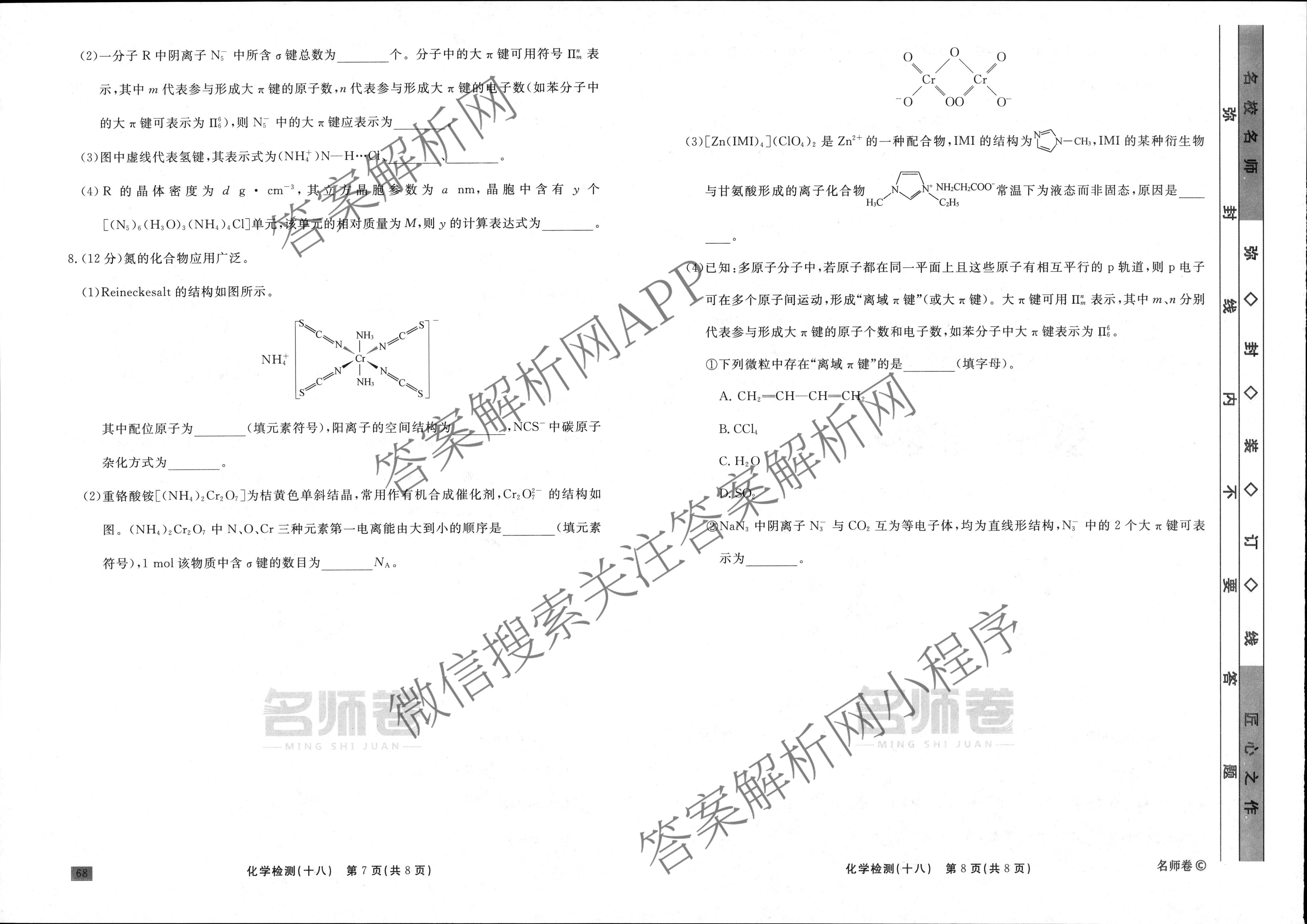 衡水名师卷·2023-2024学年度高三一轮复习单元检测卷·化学(空心菱形)检测(十八)18试题,目前分科卷答案网已经汇总了衡水名师卷·2023-2024学年度高三一轮复习单元检测卷·化学(空心菱形)检测(十八)18试题的各科答案和试卷,获取更多衡水名师卷答案解析,请在关注本站。