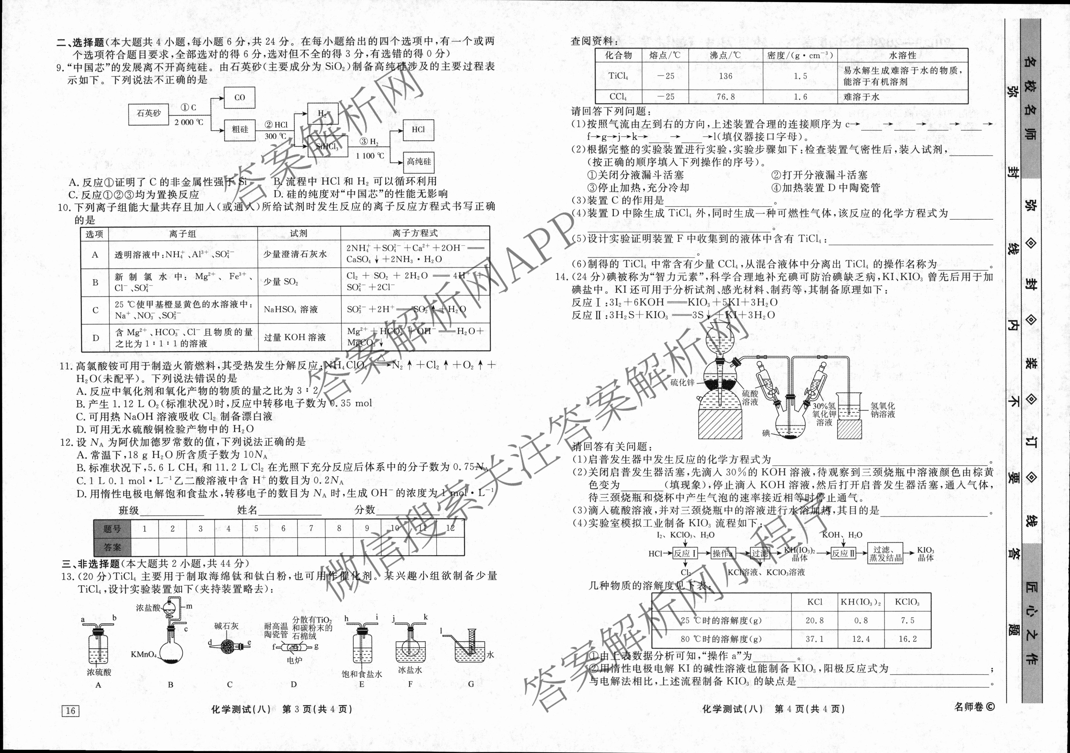 衡水名师卷2023-2024学年度高三一轮复习考点测试卷化学(40分钟双菱形)(八)8试题