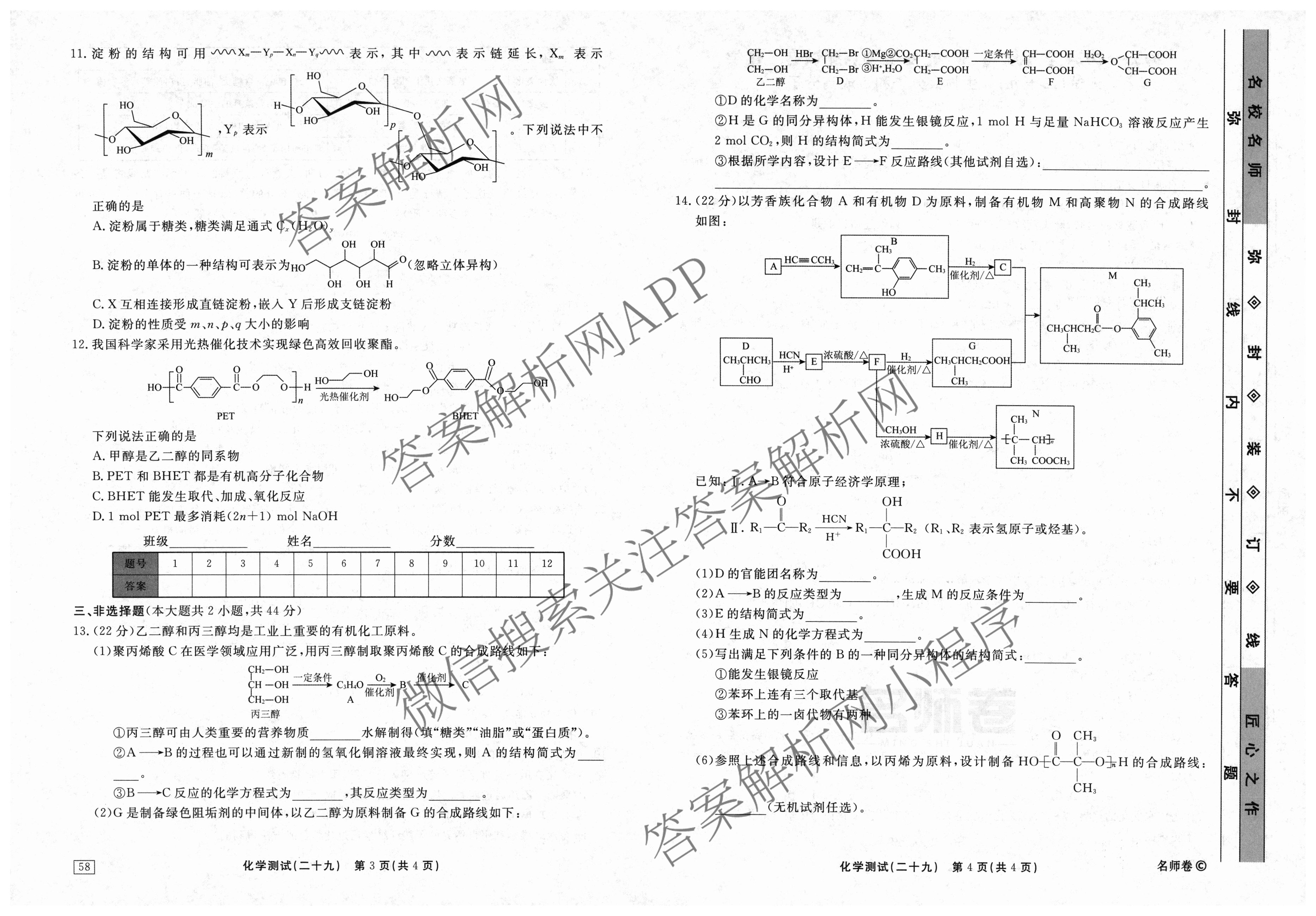 衡水名师卷2023-2024学年度高三一轮复习考点测试卷化学(40分钟双菱形)(二十九)29试题