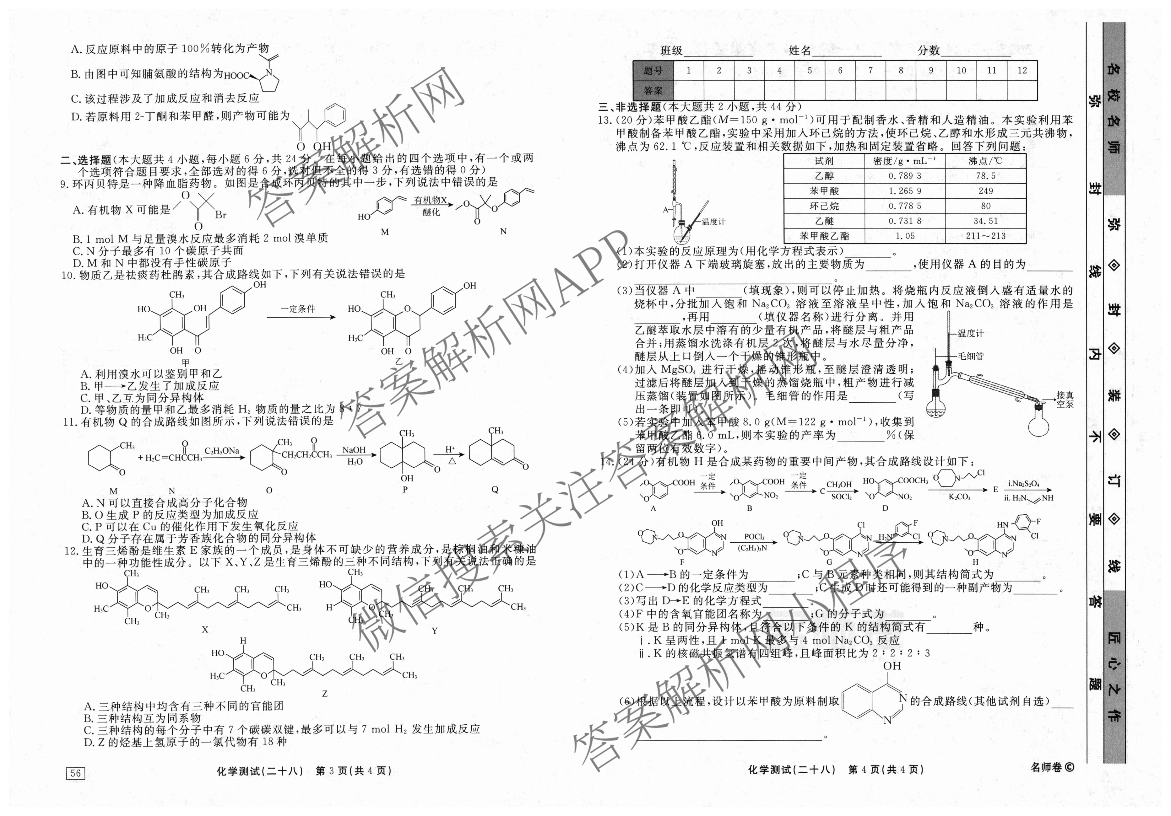 衡水名师卷2023-2024学年度高三一轮复习考点测试卷化学(40分钟双菱形)(二十八)28试题
