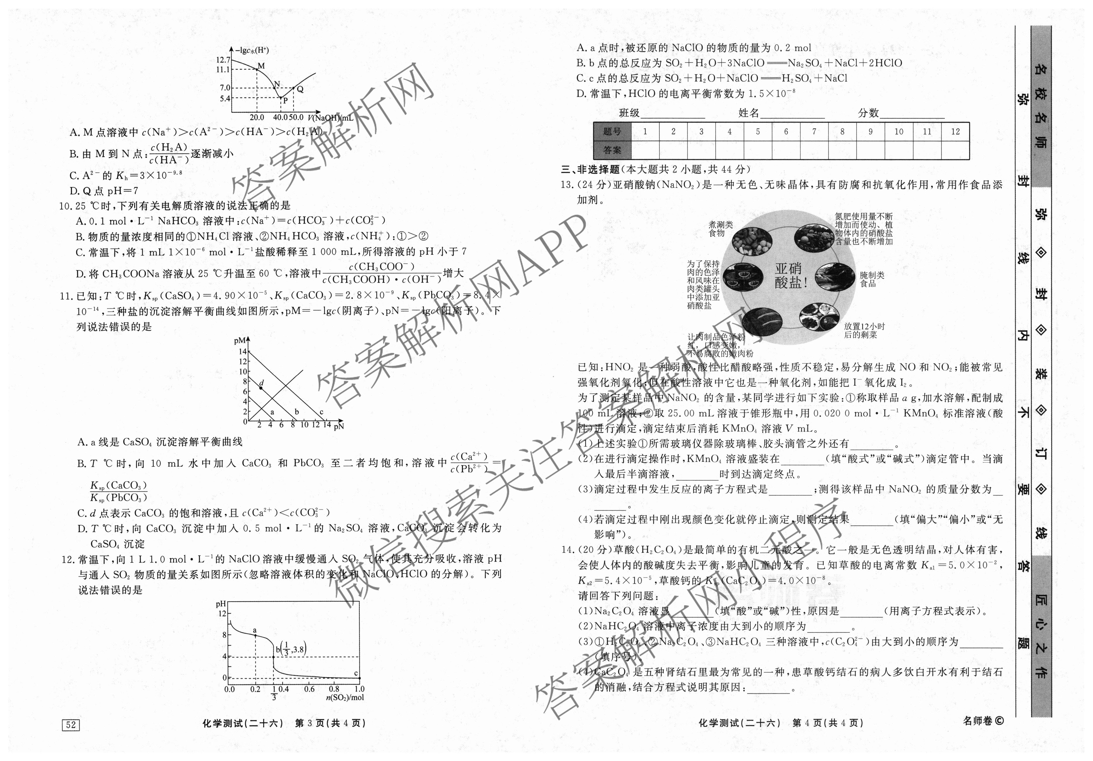 衡水名师卷2023-2024学年度高三一轮复习考点测试卷化学(40分钟双菱形)(二十六)26试题