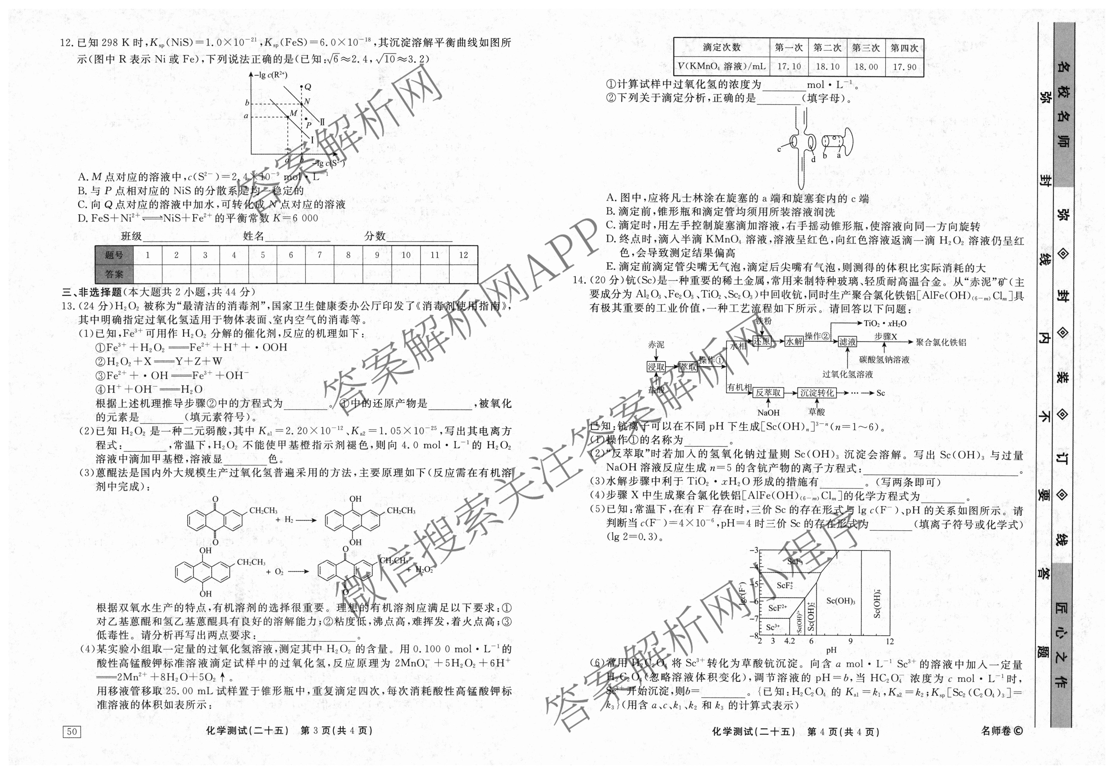 衡水名师卷2023-2024学年度高三一轮复习考点测试卷化学(40分钟双菱形)(二十五)25试题