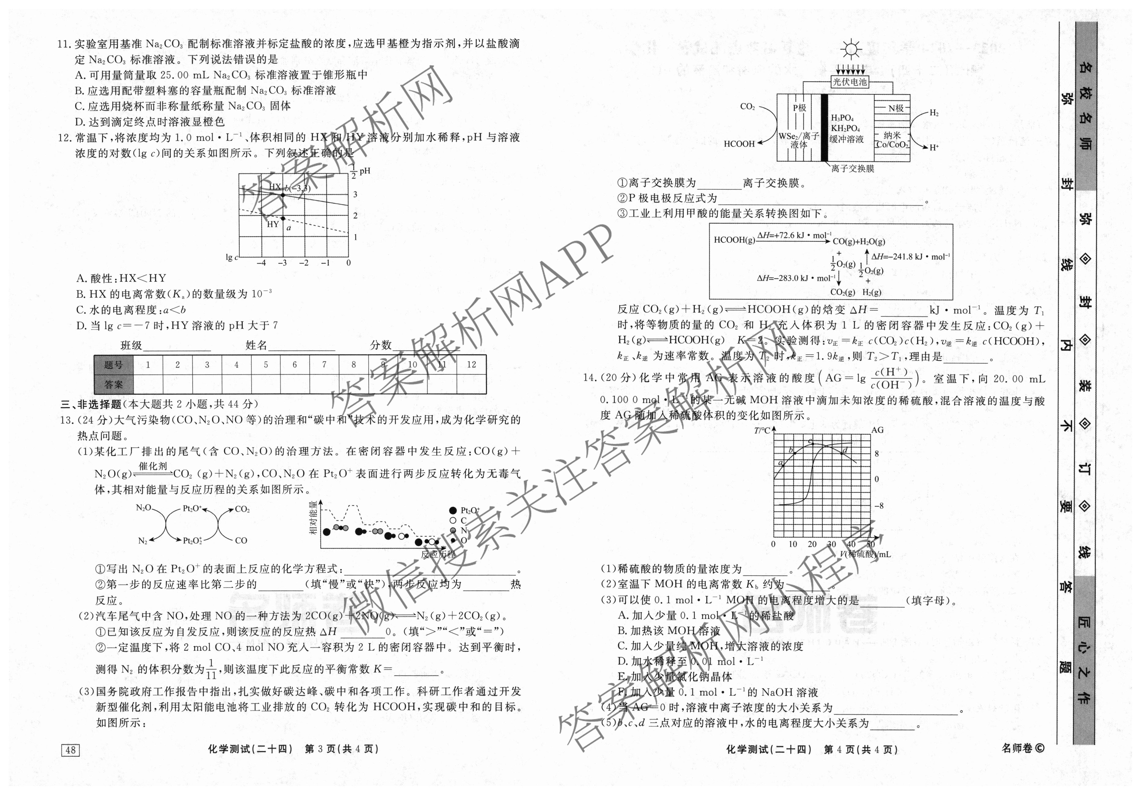 衡水名师卷2023-2024学年度高三一轮复习考点测试卷化学(40分钟双菱形)(二十四)24试题