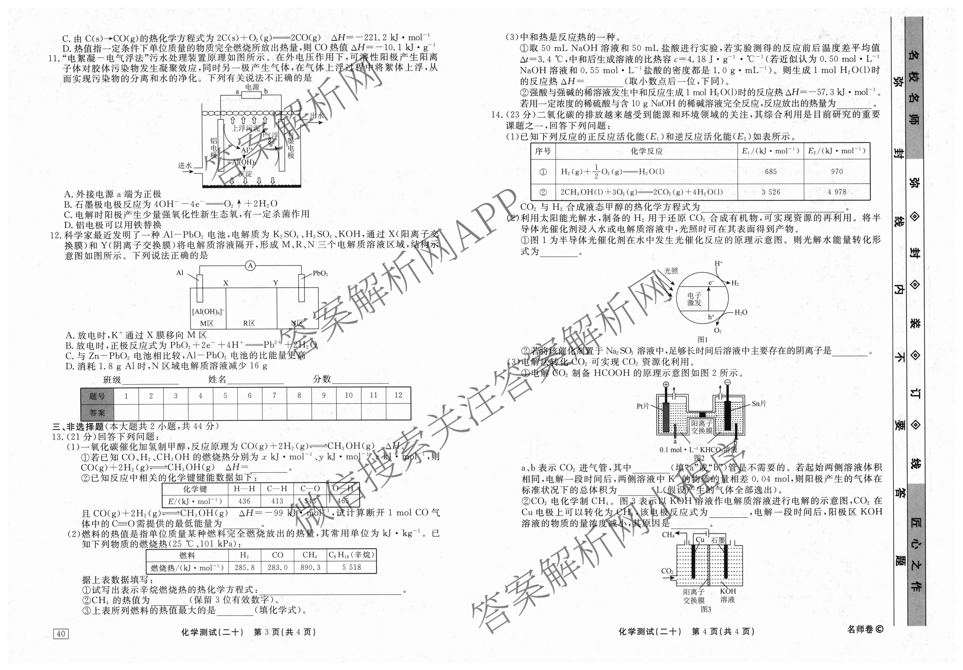 衡水名师卷2023-2024学年度高三一轮复习考点测试卷化学(40分钟双菱形)(二十)20试题