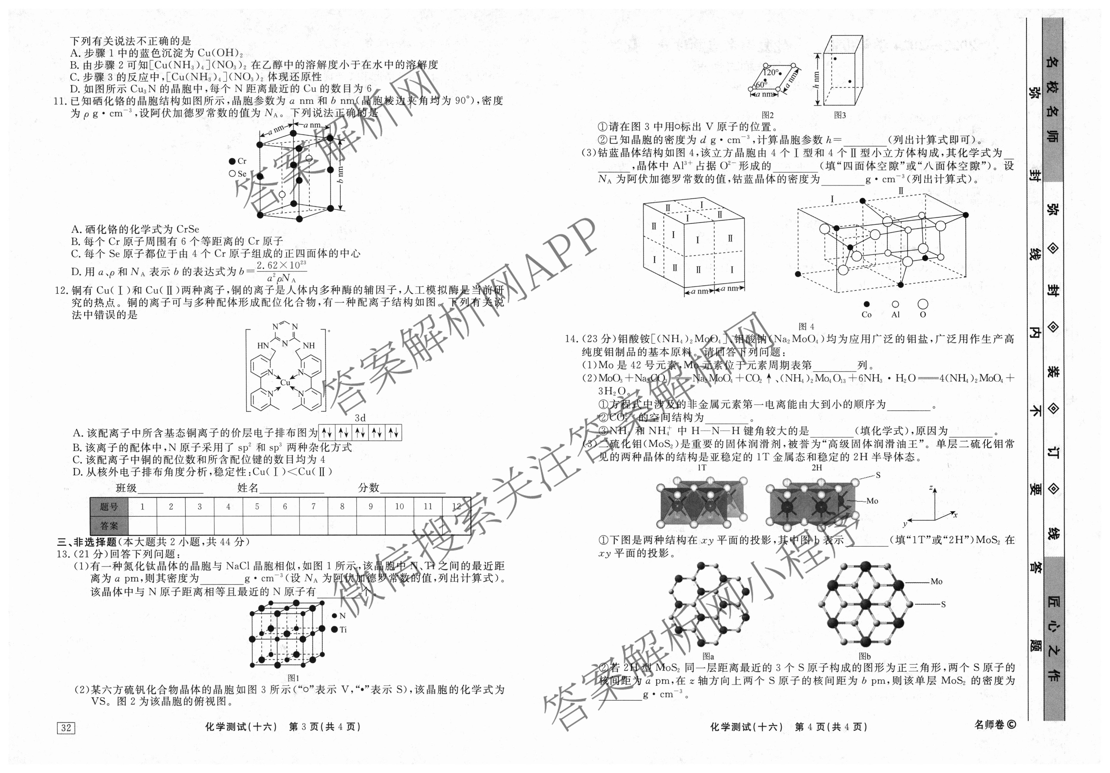 衡水名师卷2023-2024学年度高三一轮复习考点测试卷化学(40分钟双菱形)(十六)16试题