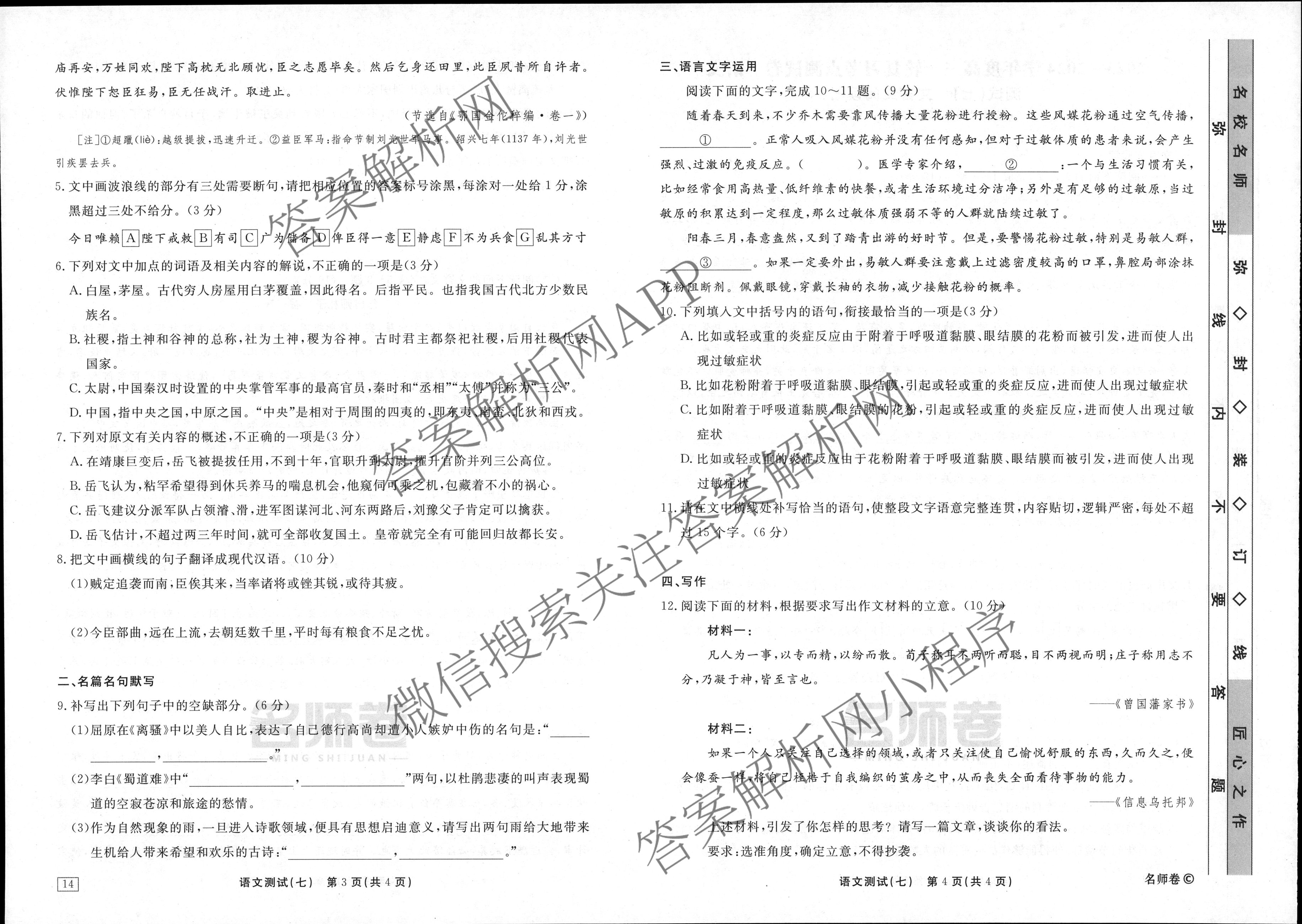 衡水名师卷·2023-2024学年度高三一轮复习考点测试卷·语文(40分钟·空心菱形)(七)7试题,目前分科卷答案网已经汇总了衡水名师卷·2023-2024学年度高三一轮复习考点测试卷·语文(40分钟·空心菱形)(七)7试题的各科答案和试卷,获取更多衡水名师卷答案解析,请在关注本站。
