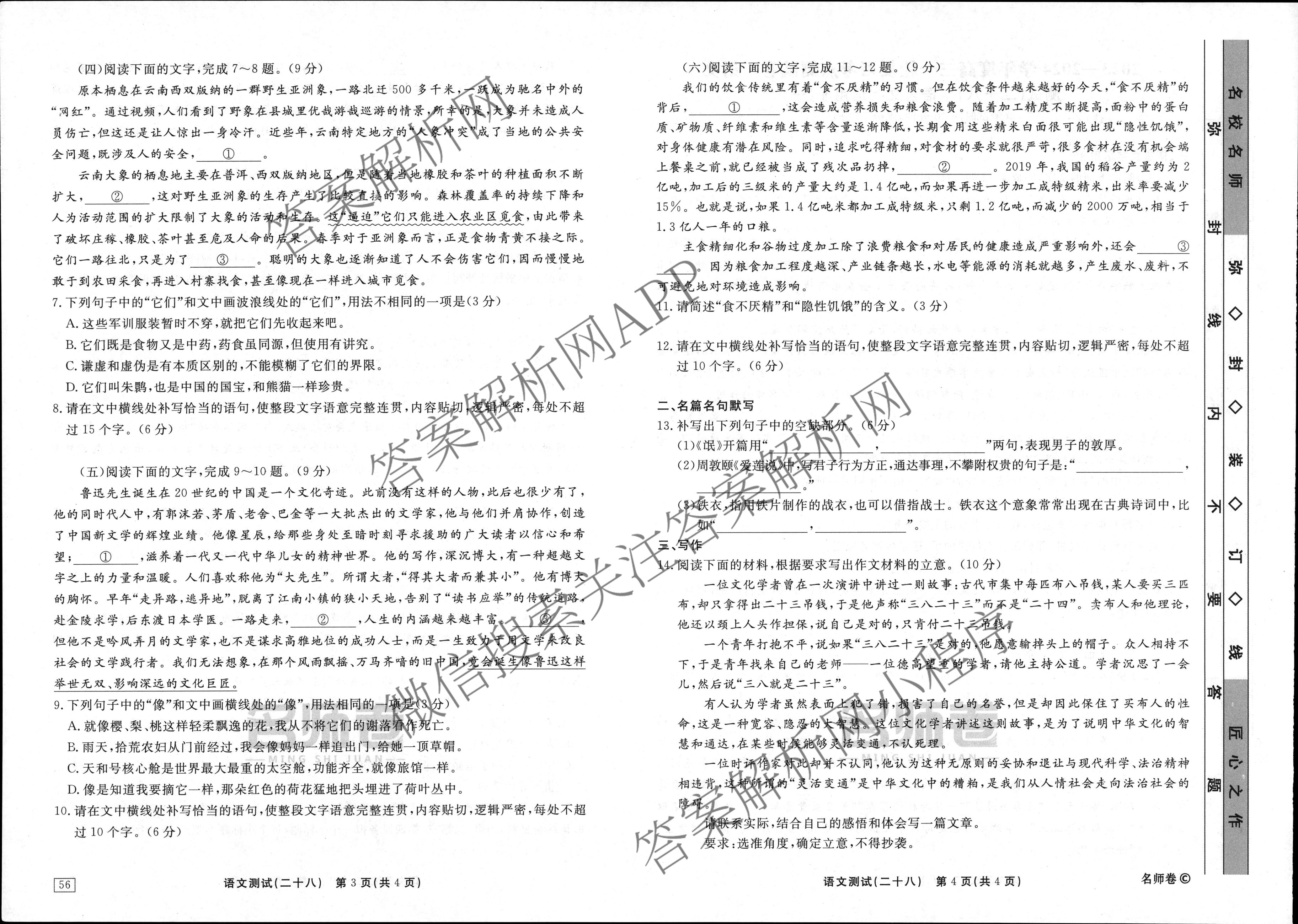 衡水名师卷·2023-2024学年度高三一轮复习考点测试卷·语文(40分钟·空心菱形)(二十八)28试题,目前分科卷答案网已经汇总了衡水名师卷·2023-2024学年度高三一轮复习考点测试卷·语文(40分钟·空心菱形)(二十八)28试题的各科答案和试卷,获取更多衡水名师卷答案解析,请在关注本站。