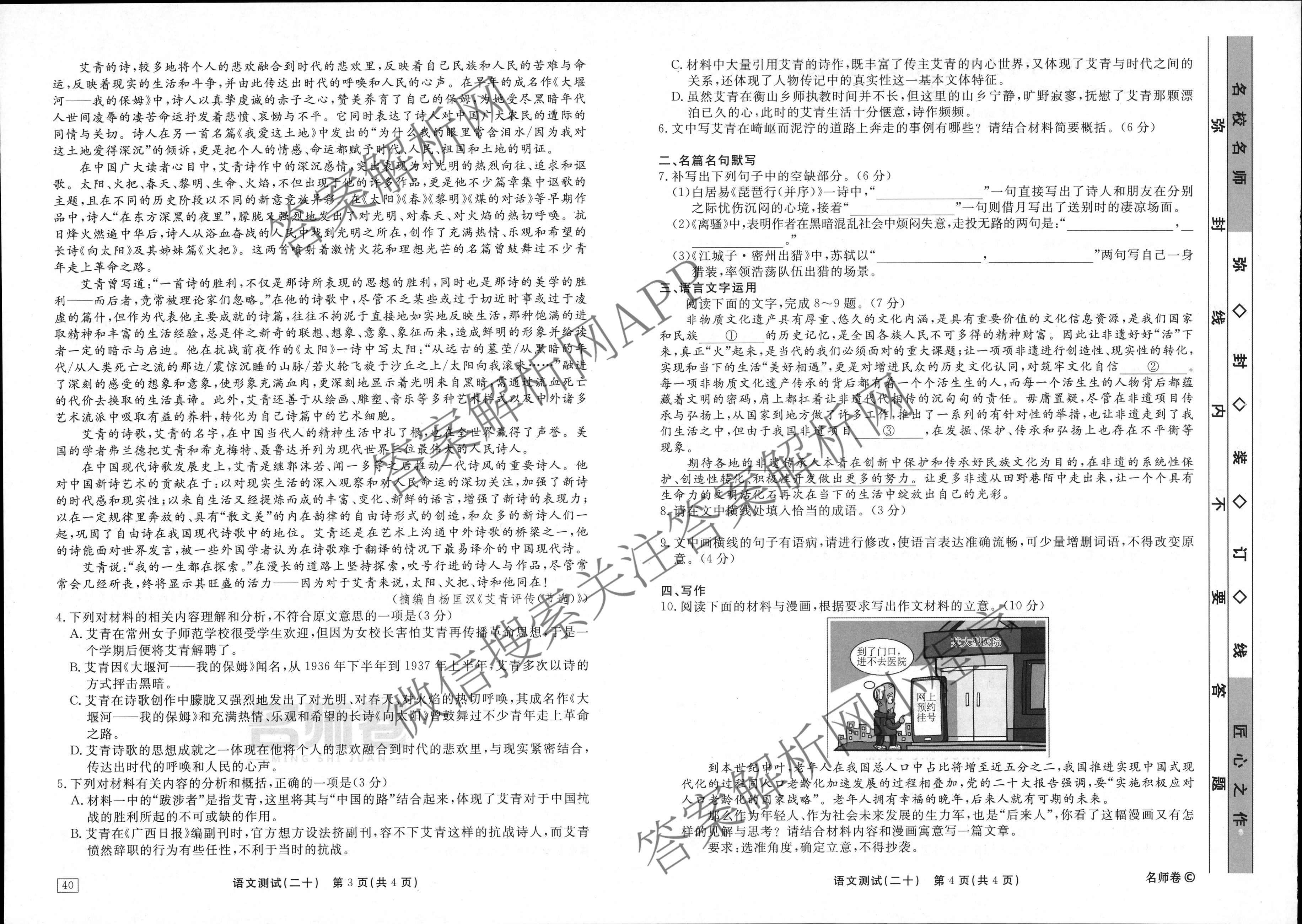 衡水名师卷2023-2024学年度高三一轮复习考点测试卷语文(40分钟空心菱形)(二十)20试题