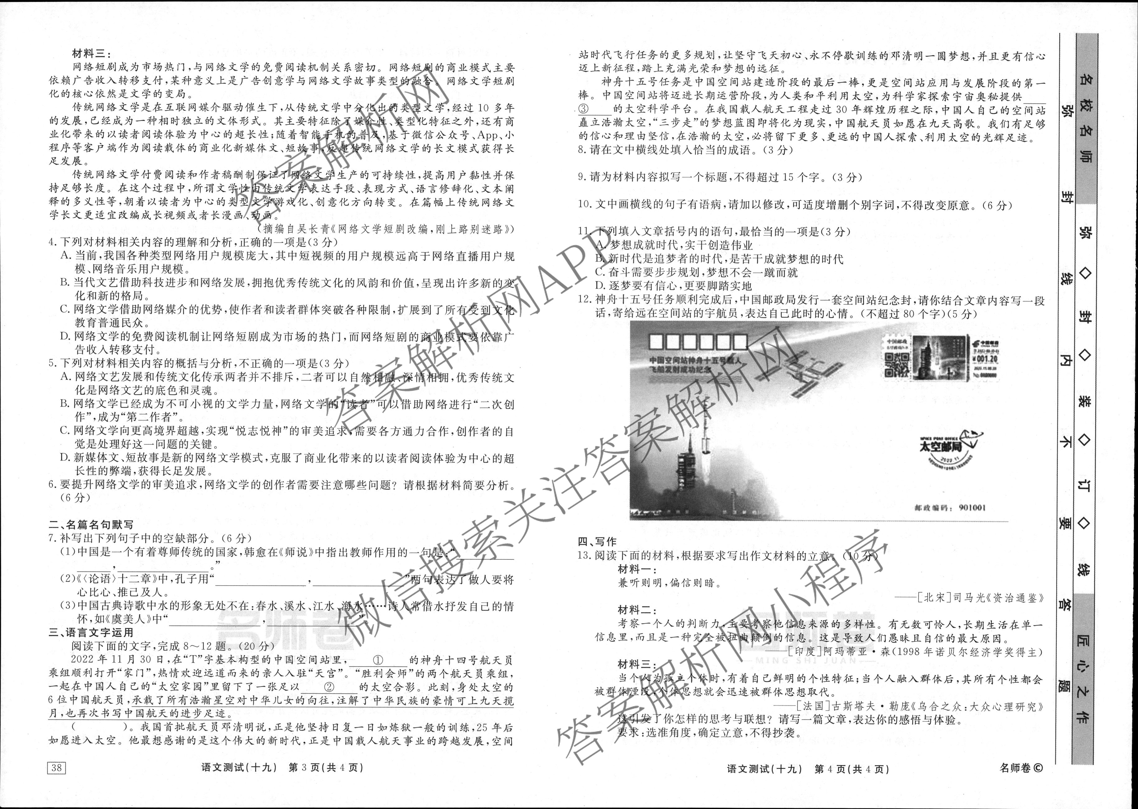 衡水名师卷·2023-2024学年度高三一轮复习考点测试卷·语文(40分钟·空心菱形)(十九)19试题,目前分科卷答案网已经汇总了衡水名师卷·2023-2024学年度高三一轮复习考点测试卷·语文(40分钟·空心菱形)(十九)19试题的各科答案和试卷,获取更多衡水名师卷答案解析,请在关注本站。