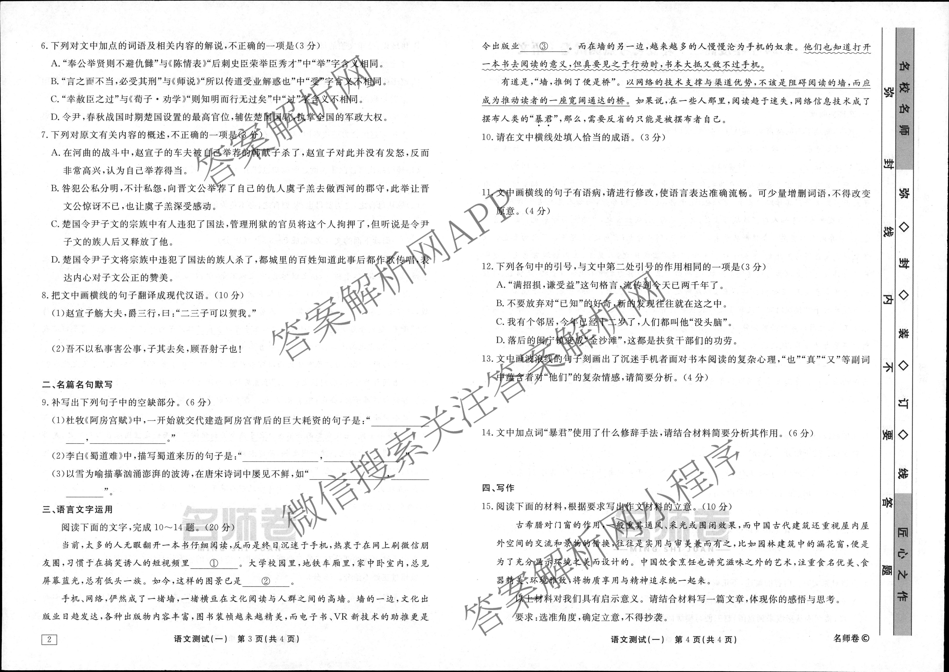 衡水名师卷·2023-2024学年度高三一轮复习考点测试卷·语文(40分钟·空心菱形)(一)1试题,目前分科卷答案网已经汇总了衡水名师卷·2023-2024学年度高三一轮复习考点测试卷·语文(40分钟·空心菱形)(一)1试题的各科答案和试卷,获取更多衡水名师卷答案解析,请在关注本站。