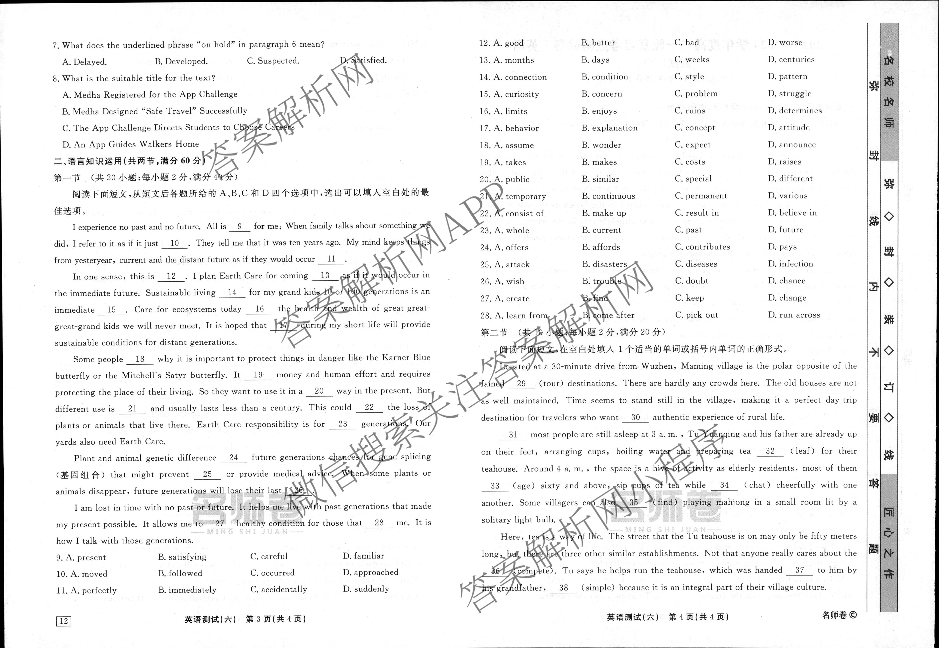 衡水名师卷·2023-2024学年度高三一轮复习考点测试卷·英语(40分钟·空心菱形)(六)6试题,目前分科卷答案网已经汇总了衡水名师卷·2023-2024学年度高三一轮复习考点测试卷·英语(40分钟·空心菱形)(六)6试题的各科答案和试卷,获取更多衡水名师卷答案解析,请在关注本站。