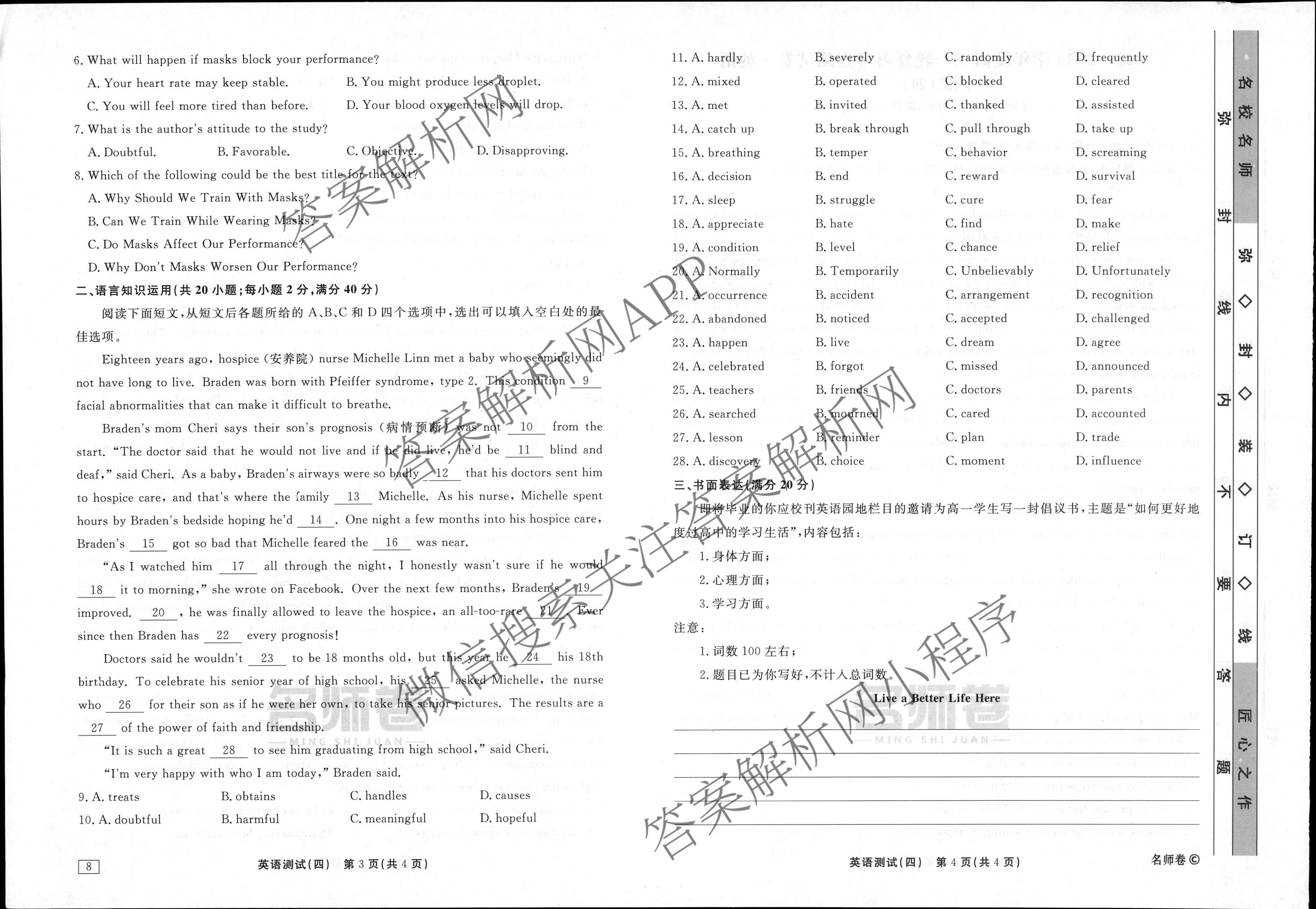 衡水名师卷2023-2024学年度高三一轮复习考点测试卷英语(40分钟空心菱形)(四)4试题