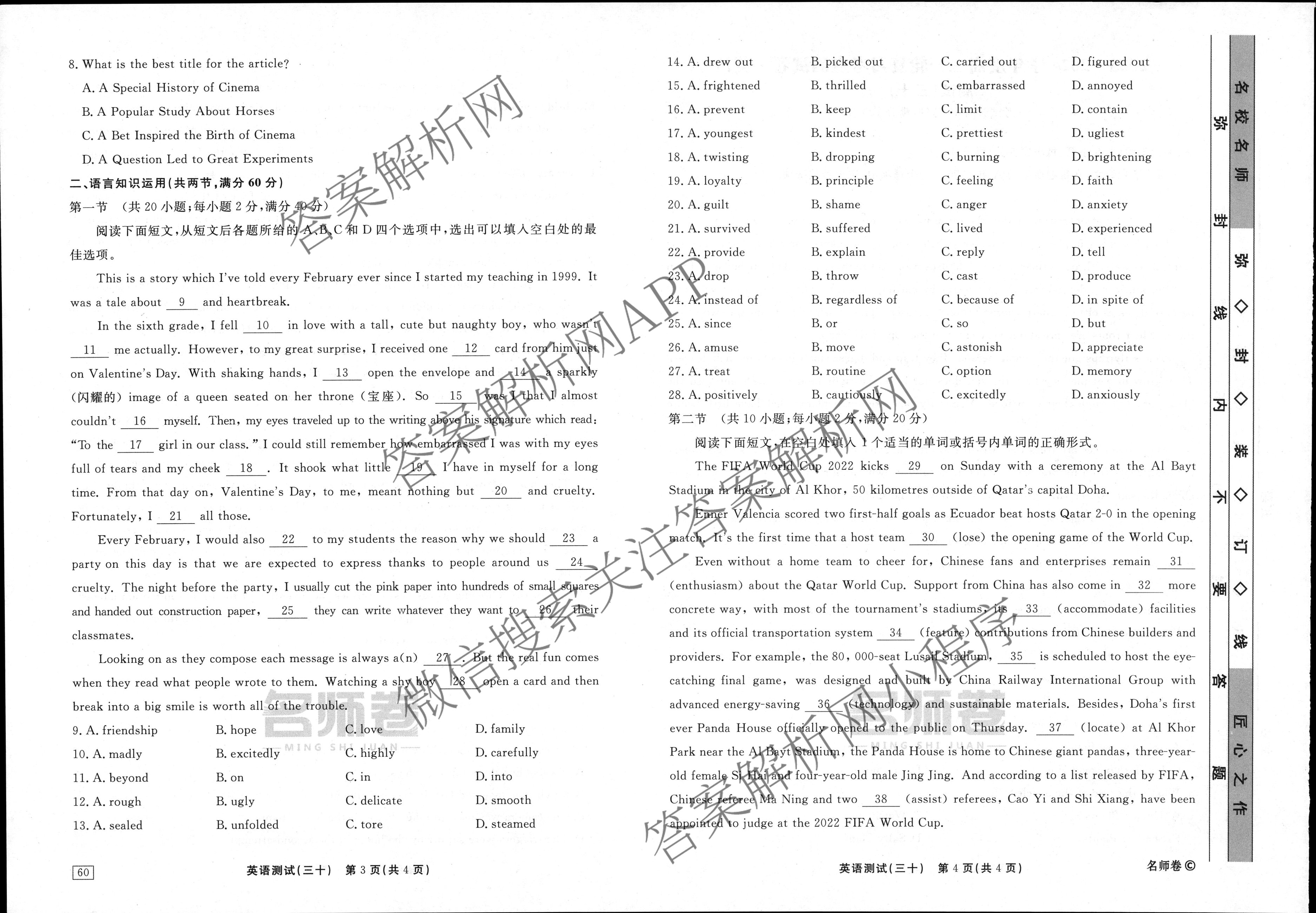 衡水名师卷2023-2024学年度高三一轮复习考点测试卷英语(40分钟空心菱形)(三十)30试题