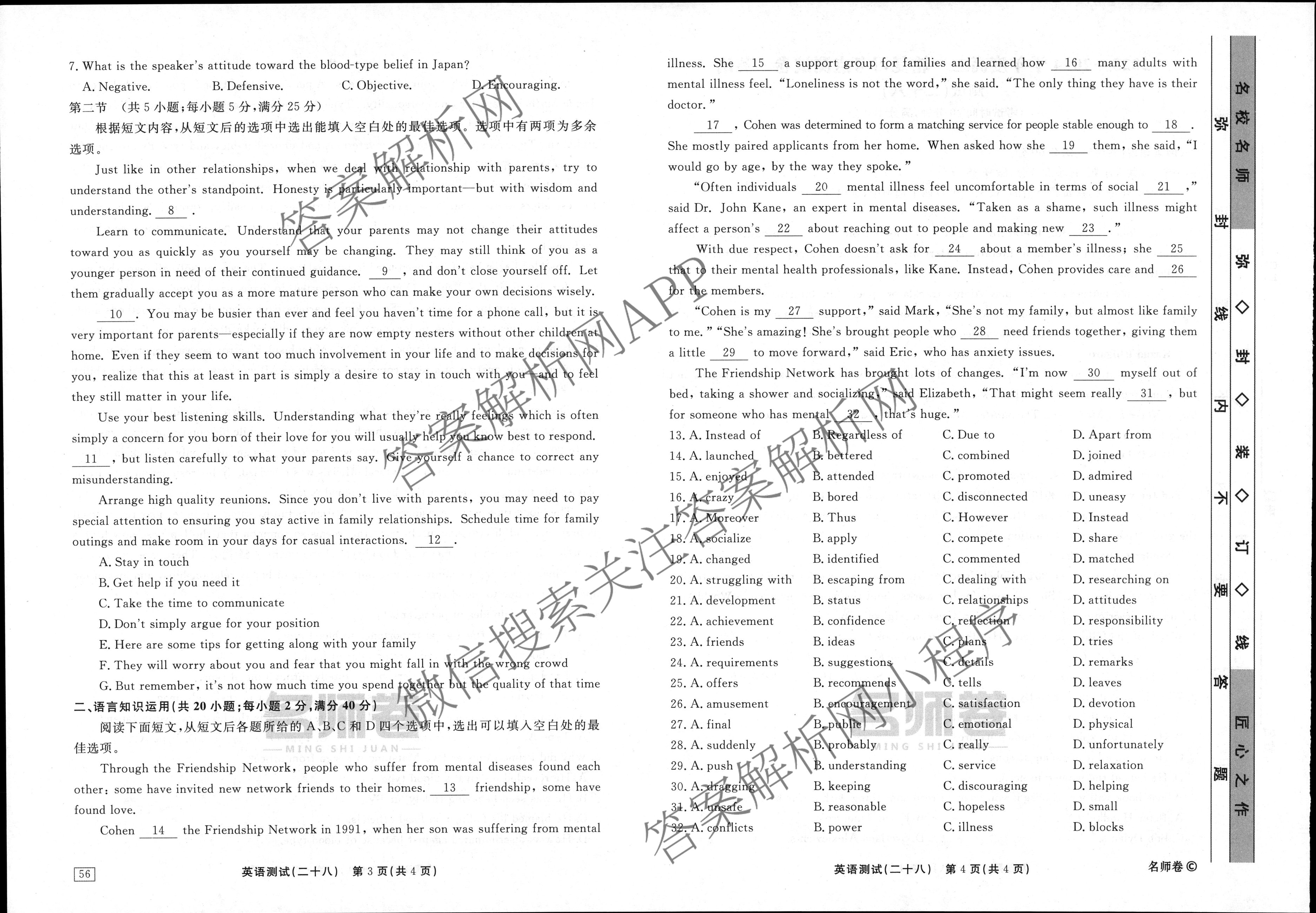 衡水名师卷2023-2024学年度高三一轮复习考点测试卷英语(40分钟空心菱形)(二十八)28试题