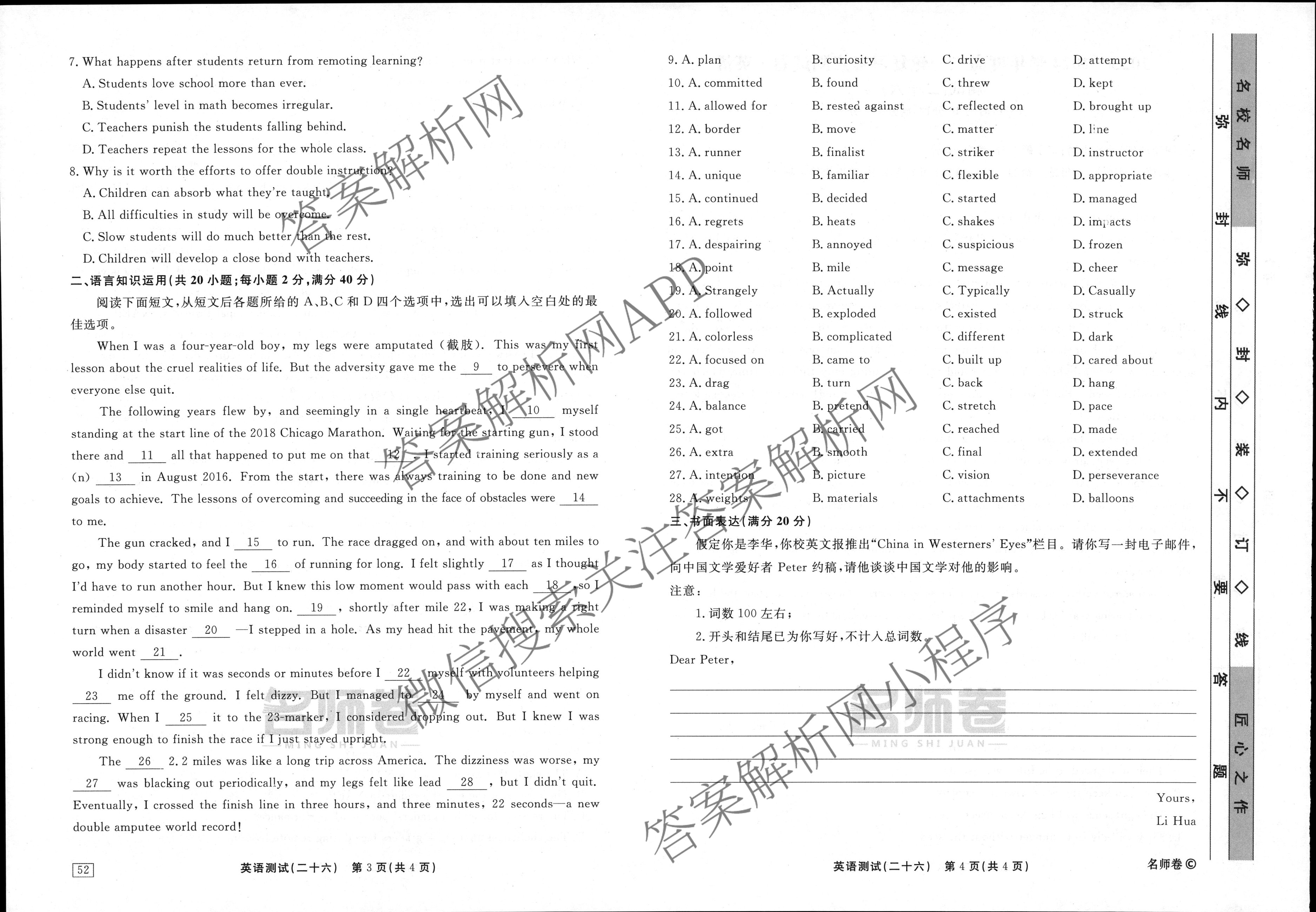 衡水名师卷2023-2024学年度高三一轮复习考点测试卷英语(40分钟空心菱形)(二十六)26试题