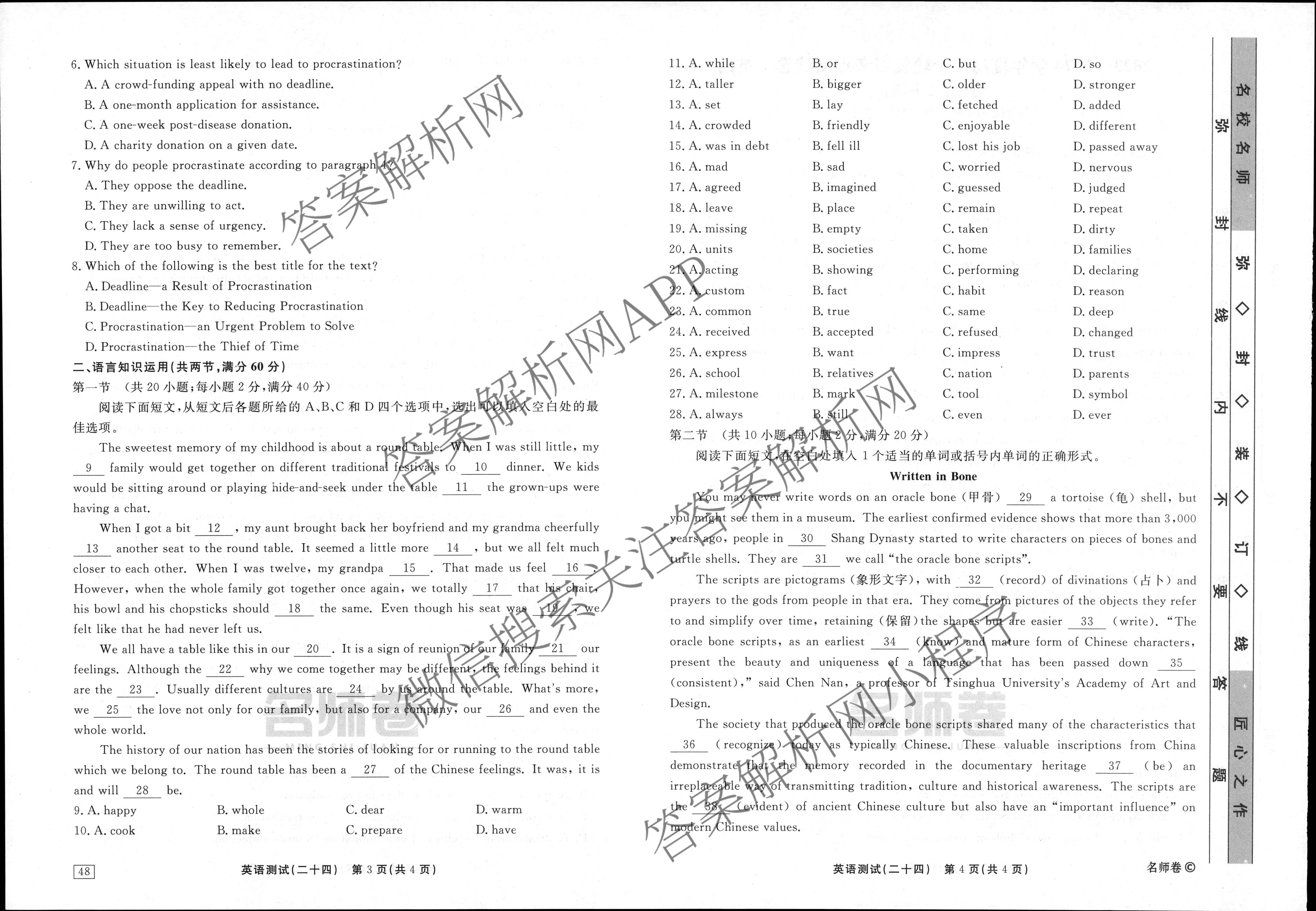 衡水名师卷2023-2024学年度高三一轮复习考点测试卷英语(40分钟空心菱形)(二十四)24试题