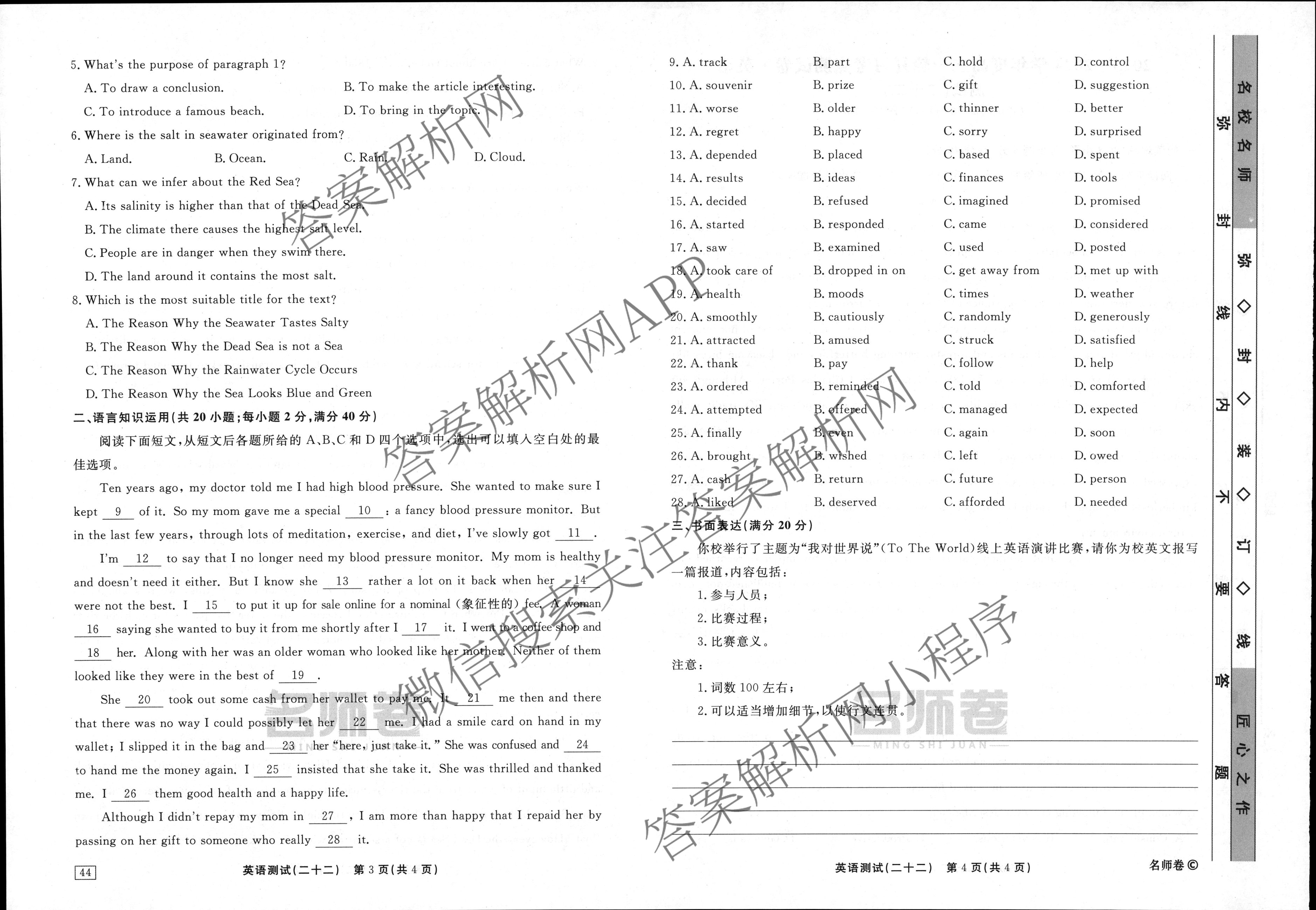衡水名师卷·2023-2024学年度高三一轮复习考点测试卷·英语(40分钟·空心菱形)(二十二)22试题,目前分科卷答案网已经汇总了衡水名师卷·2023-2024学年度高三一轮复习考点测试卷·英语(40分钟·空心菱形)(二十二)22试题的各科答案和试卷,获取更多衡水名师卷答案解析,请在关注本站。