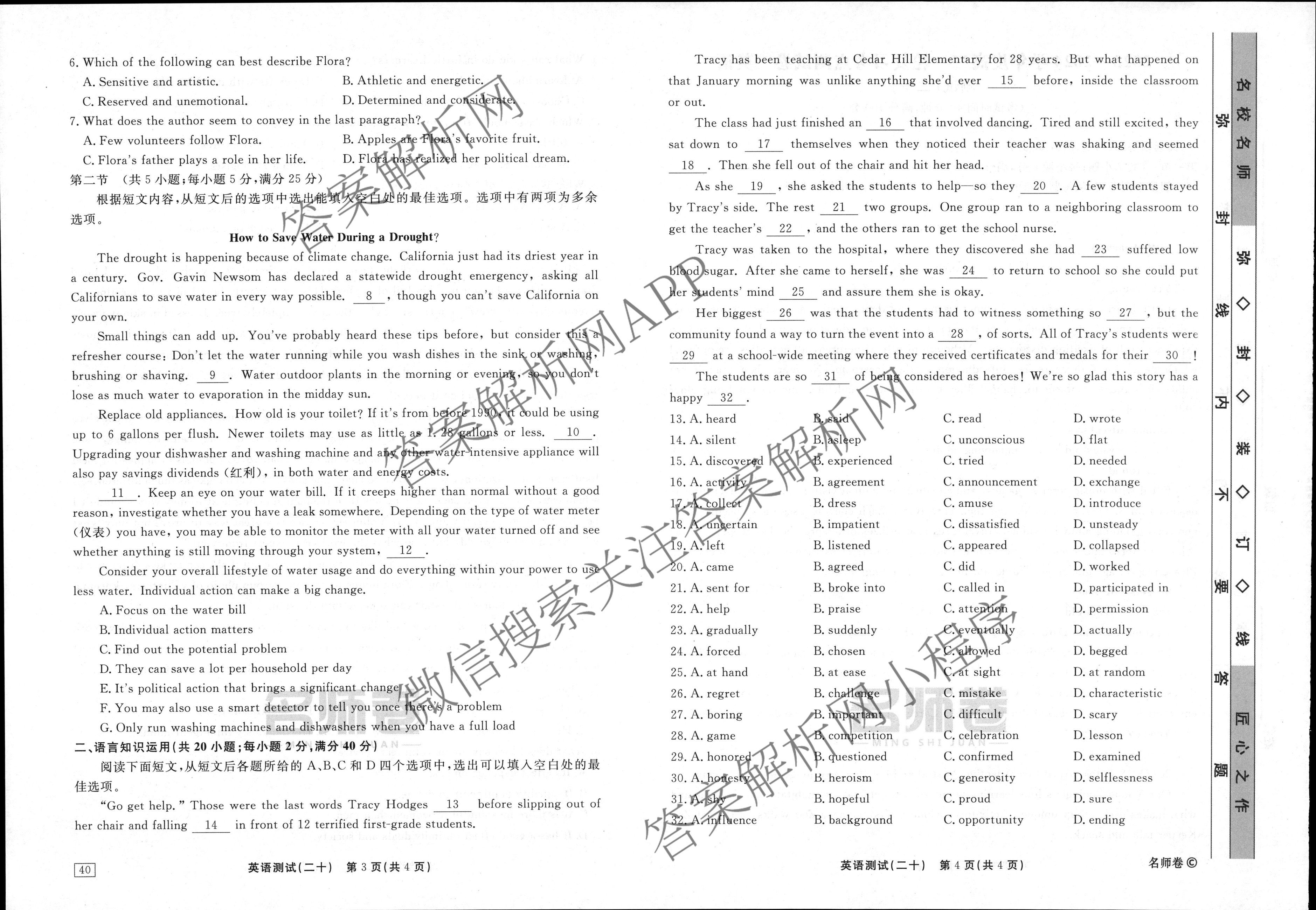 衡水名师卷2023-2024学年度高三一轮复习考点测试卷英语(40分钟空心菱形)(二十)20试题