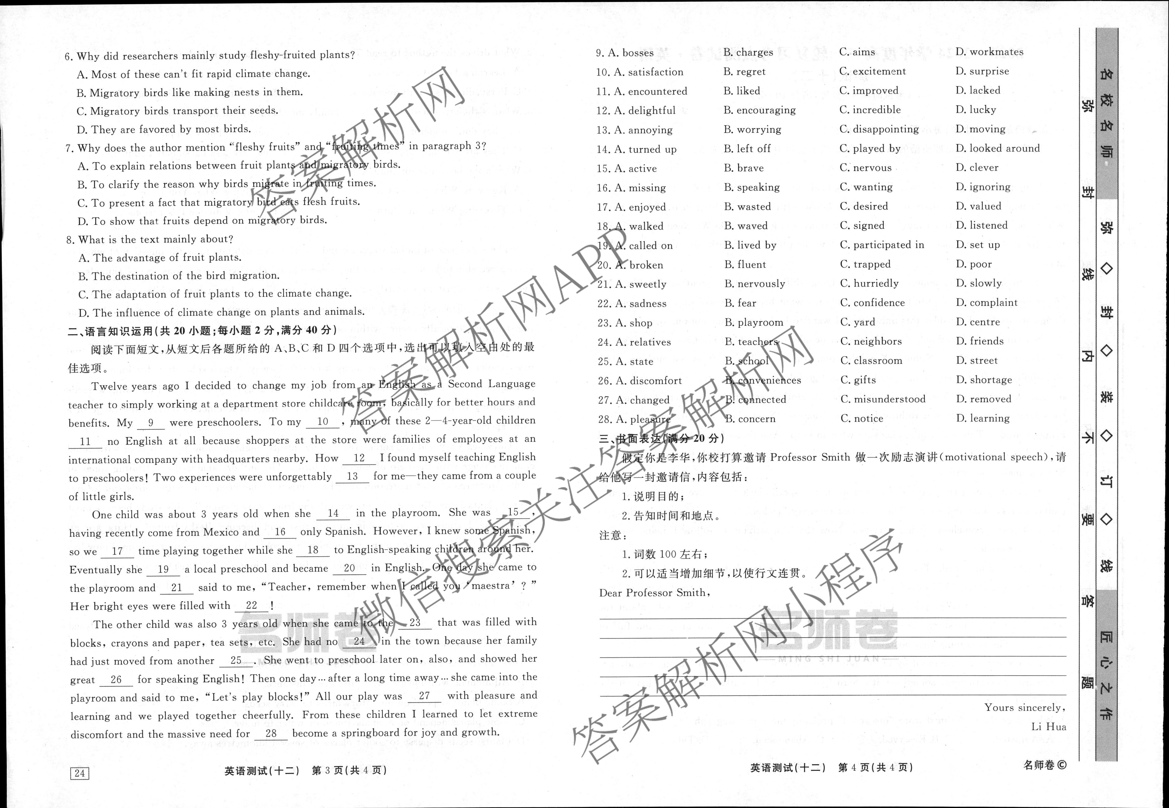 衡水名师卷·2023-2024学年度高三一轮复习考点测试卷·英语(40分钟·空心菱形)(十二)12试题,目前分科卷答案网已经汇总了衡水名师卷·2023-2024学年度高三一轮复习考点测试卷·英语(40分钟·空心菱形)(十二)12试题的各科答案和试卷,获取更多衡水名师卷答案解析,请在关注本站。