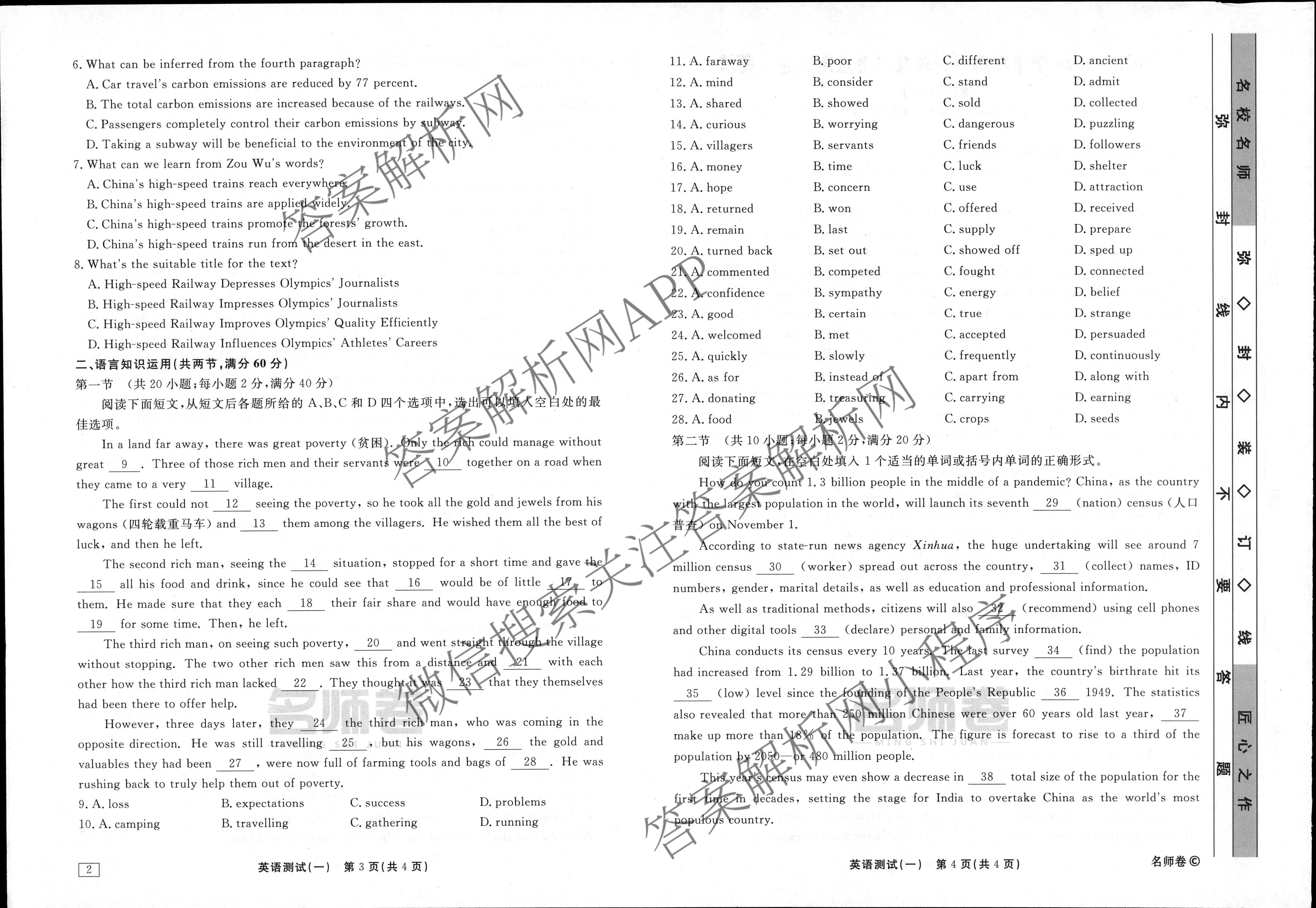 衡水名师卷2023-2024学年度高三一轮复习考点测试卷英语(40分钟空心菱形)(一)1试题
