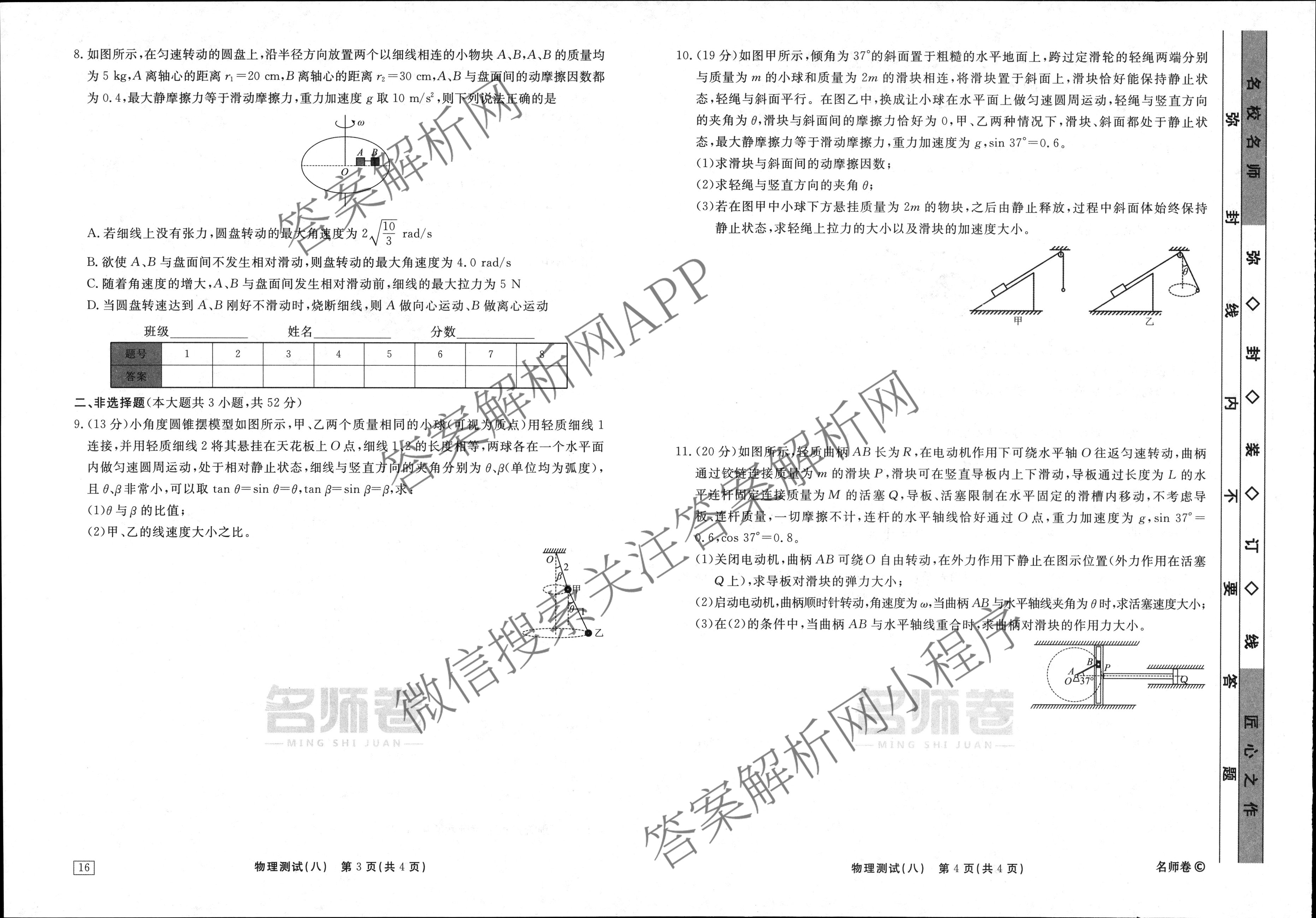 衡水名师卷2023-2024学年度高三一轮复习考点测试卷物理(40分钟空心菱形)(八)8试题