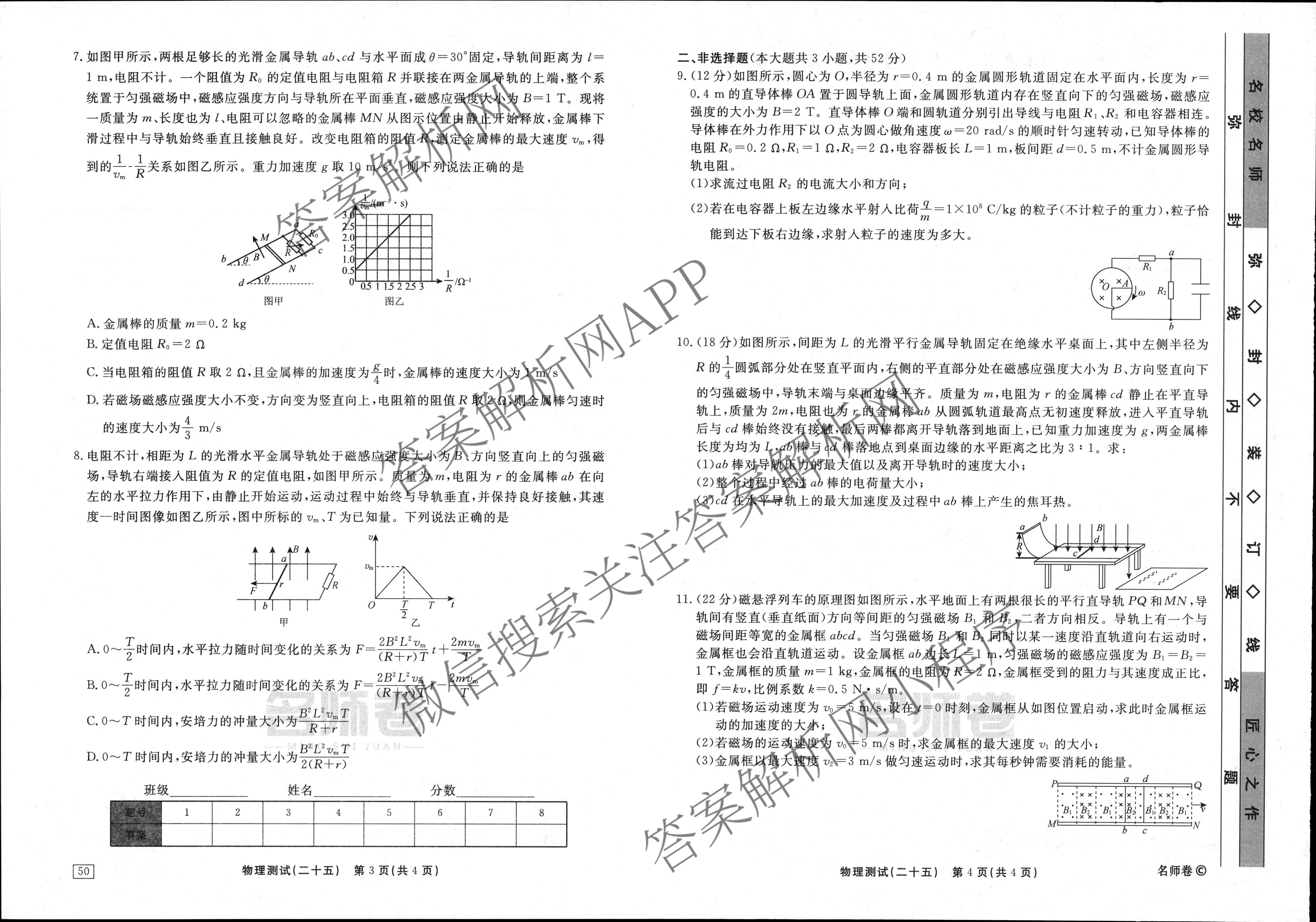 衡水名师卷2023-2024学年度高三一轮复习考点测试卷物理(40分钟空心菱形)(二十五)25试题