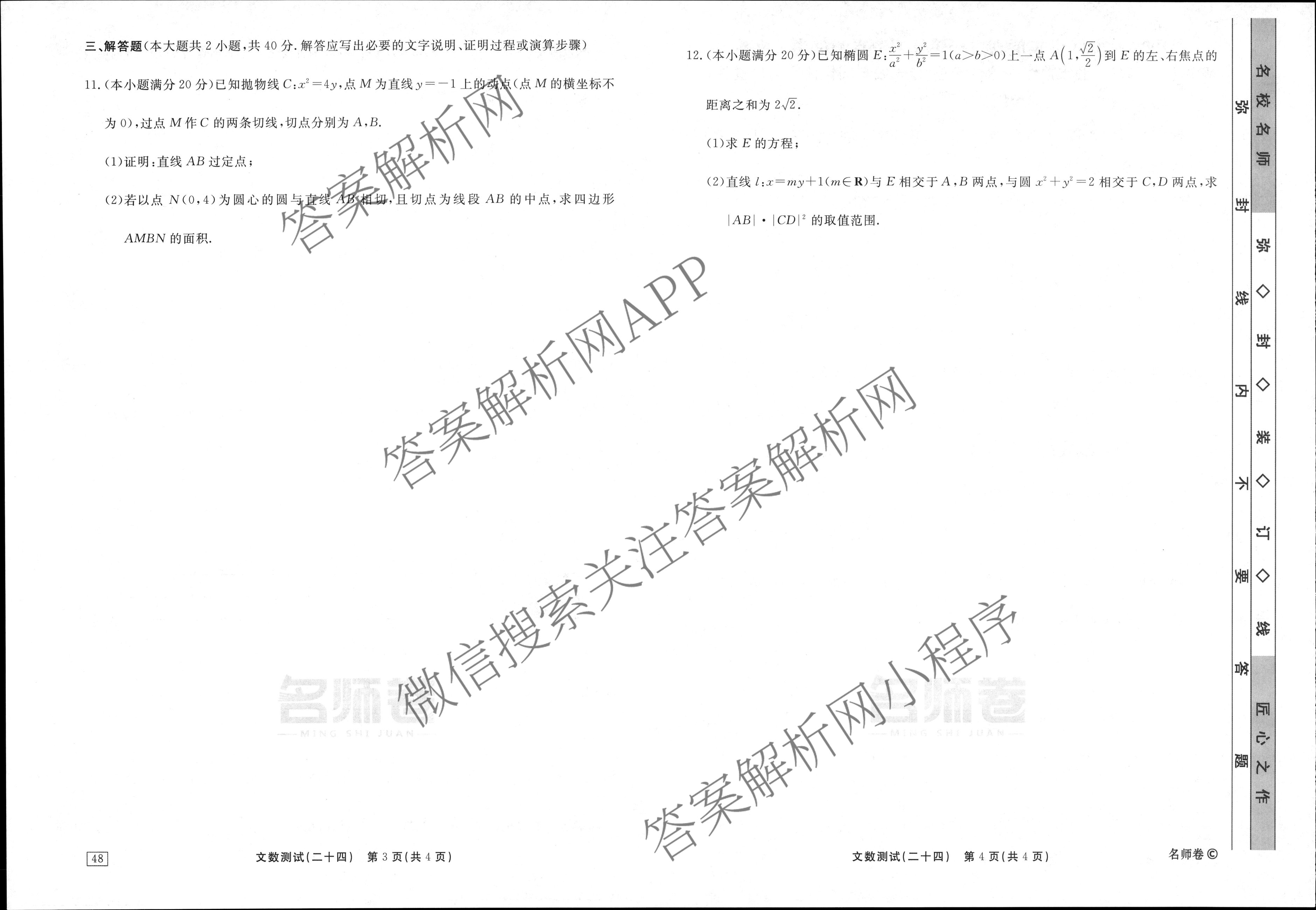 衡水名师卷·2023-2024学年度高三一轮复习考点测试卷·文数(40分钟·空心菱形)(二十四)24试题,目前分科卷答案网已经汇总了衡水名师卷·2023-2024学年度高三一轮复习考点测试卷·文数(40分钟·空心菱形)(二十四)24试题的各科答案和试卷,获取更多衡水名师卷答案解析,请在关注本站。