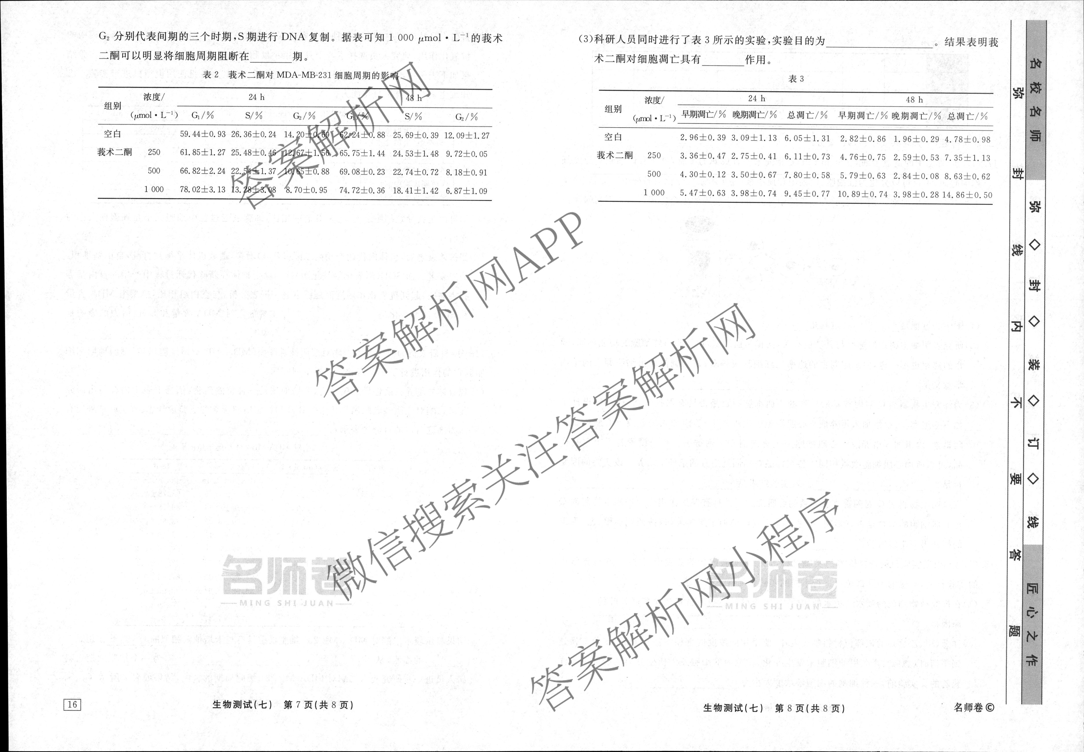 衡水名师卷2023-2024学年度高三一轮复习考点测试卷生物(40分钟空心菱形)(七)7试题