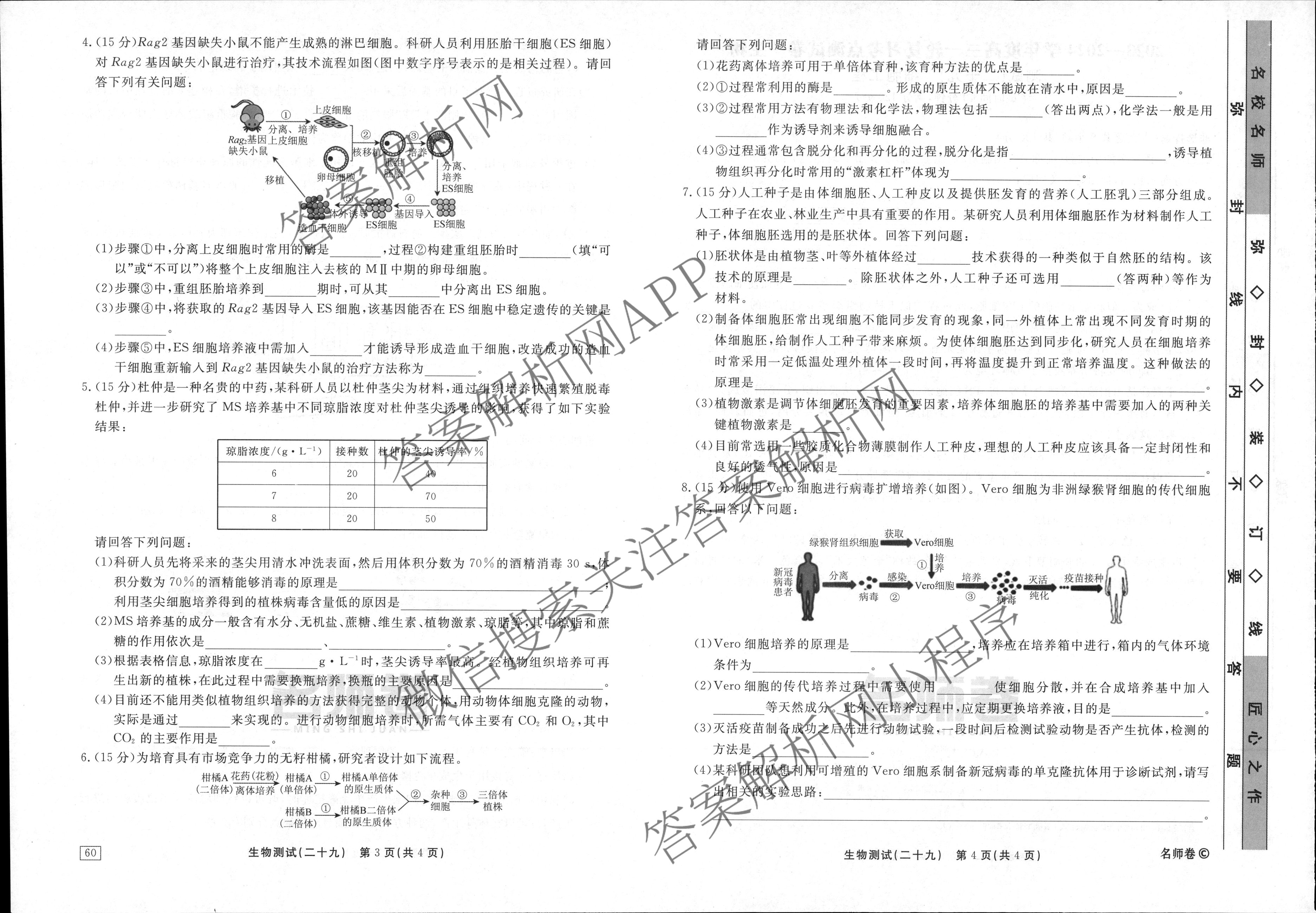 衡水名师卷2023-2024学年度高三一轮复习考点测试卷生物(40分钟空心菱形)(二十九)29试题