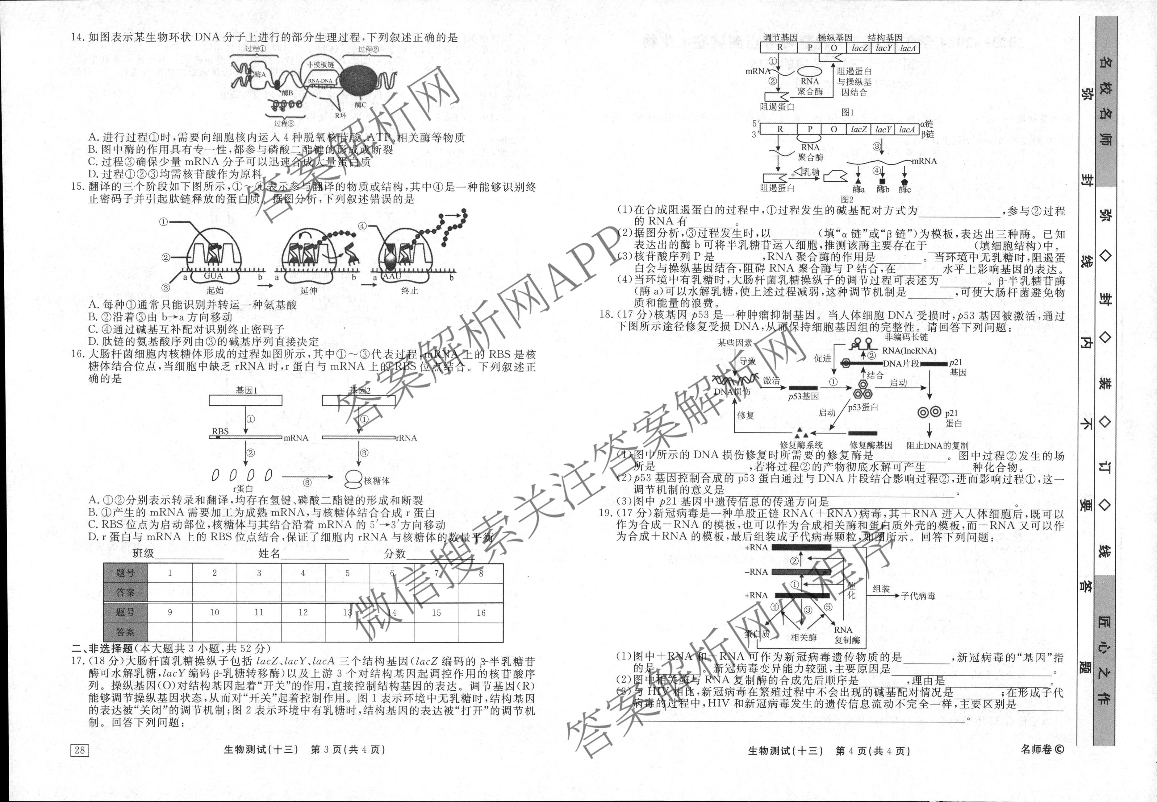 衡水名师卷2023-2024学年度高三一轮复习考点测试卷生物(40分钟空心菱形)(十三)13试题