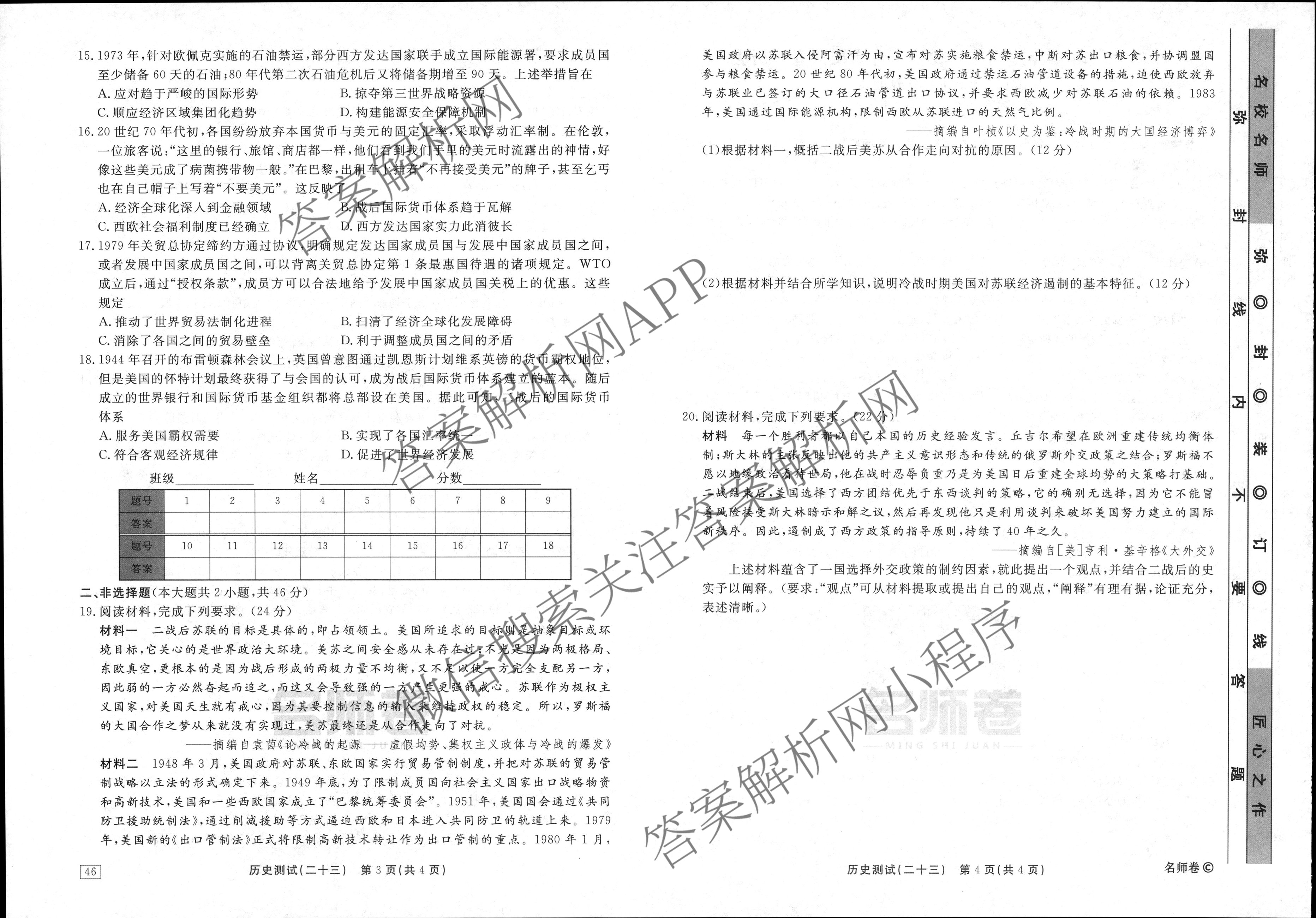 衡水名师卷2023-2024学年度高三一轮复习考点测试卷历史(40分钟同心圆)(二十三)23试题