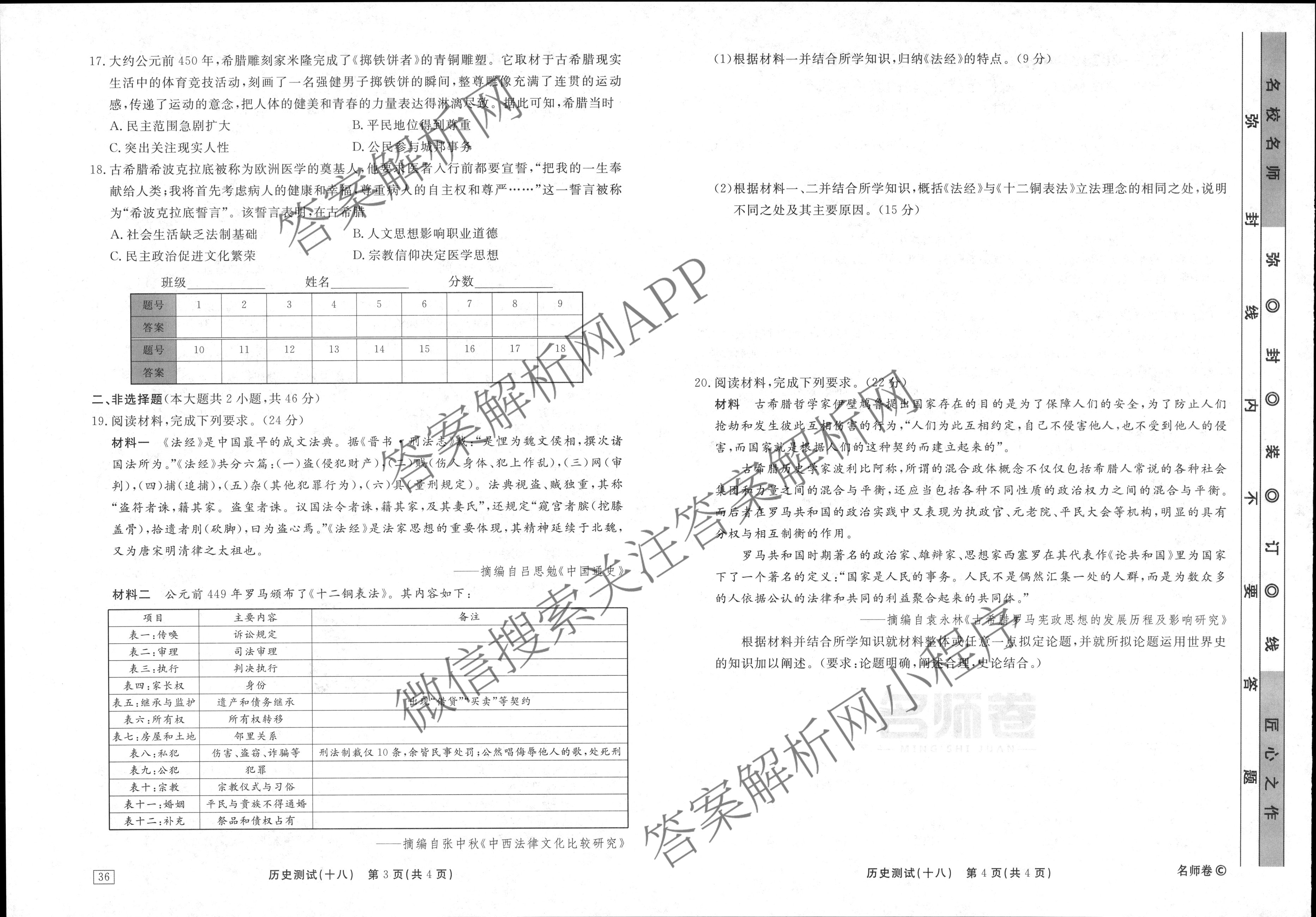 衡水名师卷2023-2024学年度高三一轮复习考点测试卷历史(40分钟同心圆)(十八)18试题