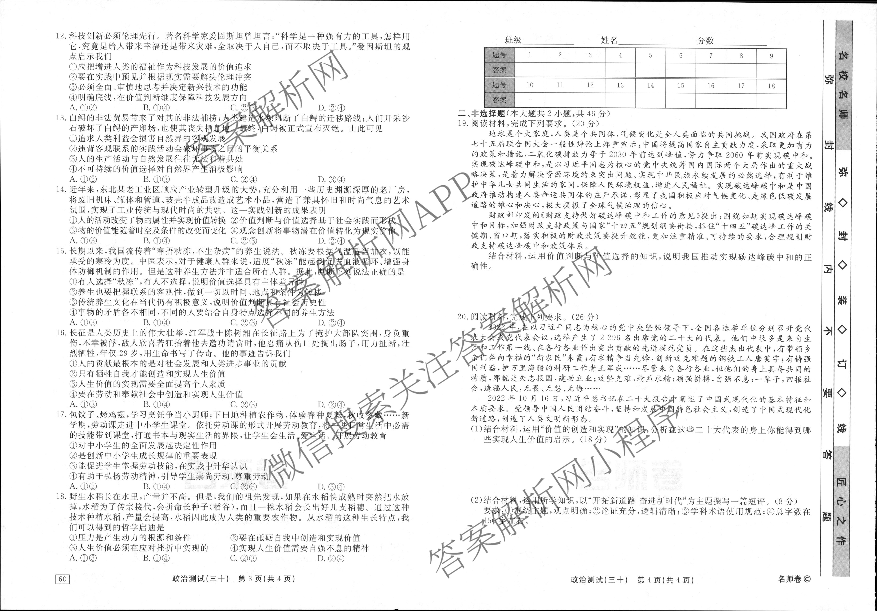 衡水名师卷2023-2024学年度高三一轮复习考点测试卷政治(40分钟空心菱形)(三十)30试题