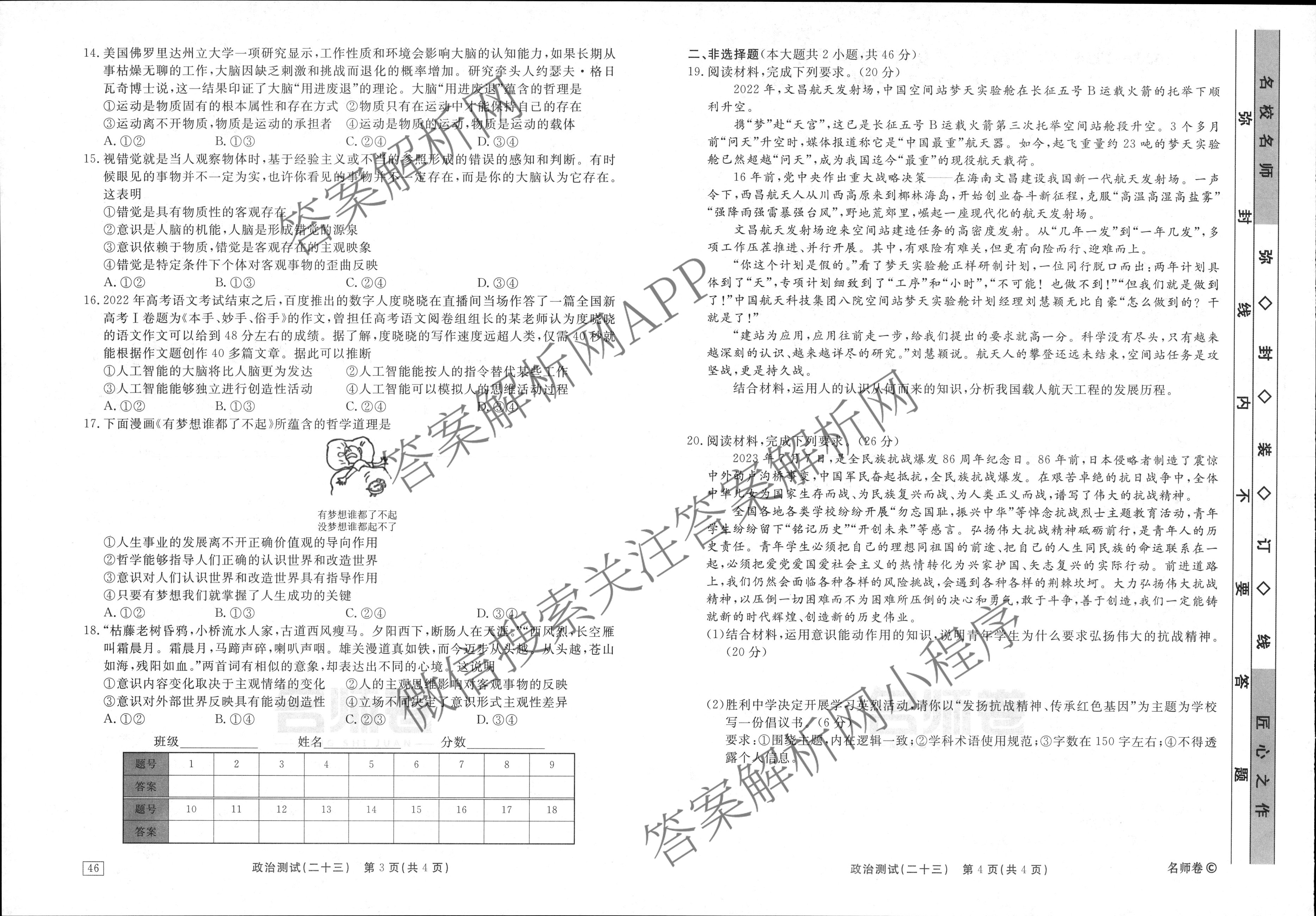 衡水名师卷2023-2024学年度高三一轮复习考点测试卷政治(40分钟空心菱形)(二十三)23试题