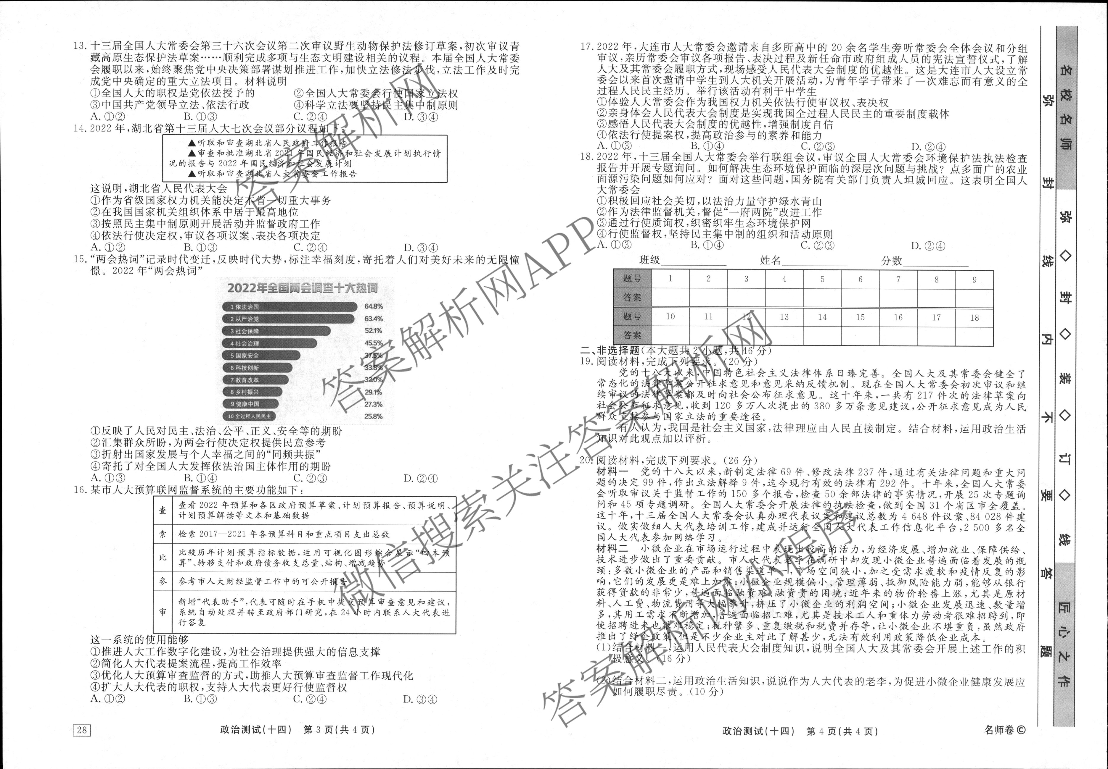 衡水名师卷2023-2024学年度高三一轮复习考点测试卷政治(40分钟空心菱形)(十四)14试题