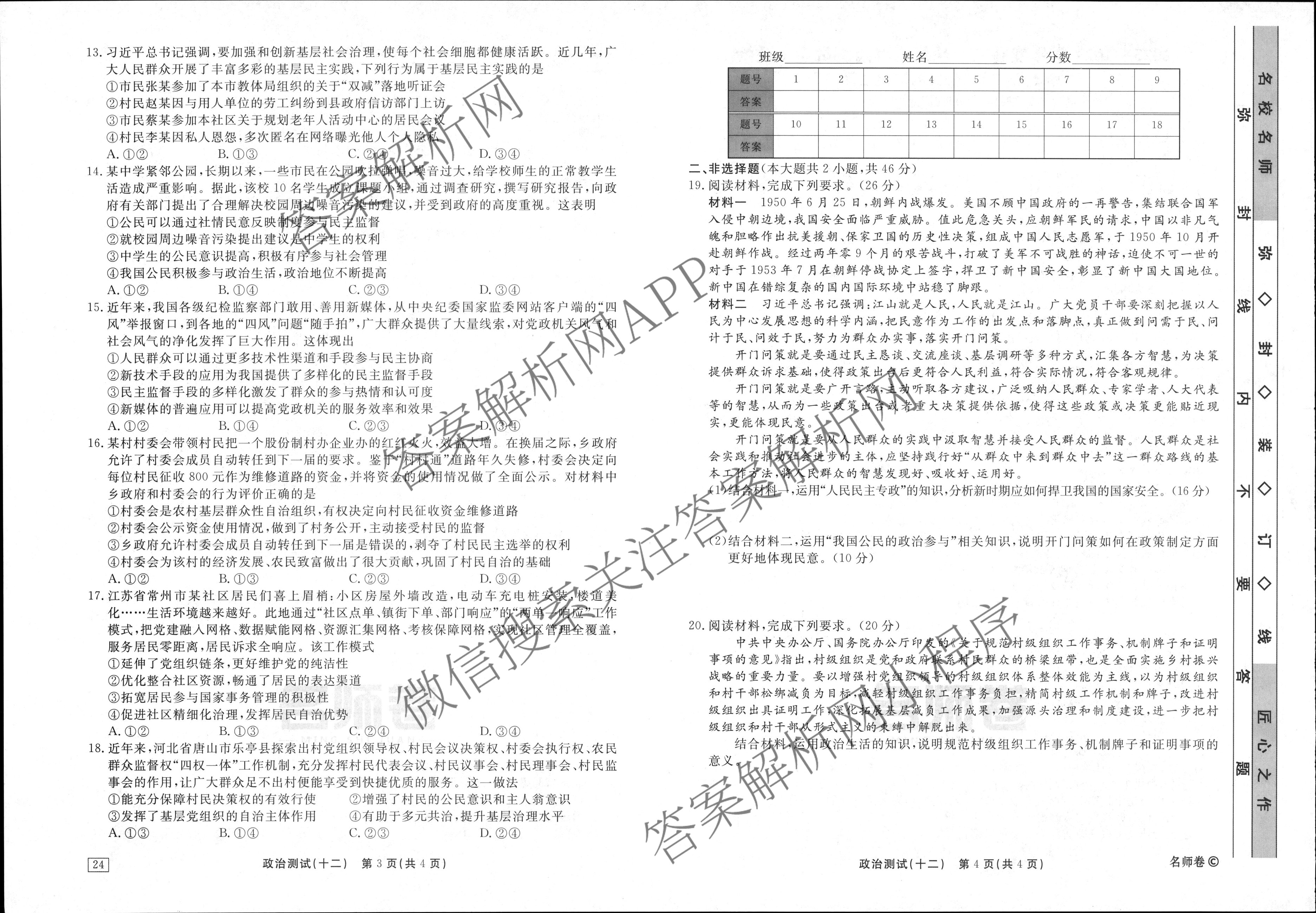 衡水名师卷·2023-2024学年度高三一轮复习考点测试卷·政治(40分钟·空心菱形)(十二)12试题,目前分科卷答案网已经汇总了衡水名师卷·2023-2024学年度高三一轮复习考点测试卷·政治(40分钟·空心菱形)(十二)12试题的各科答案和试卷,获取更多衡水名师卷答案解析,请在关注本站。